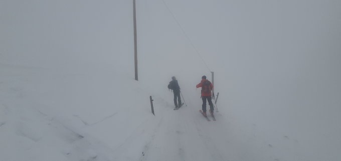Schöner Hang auch am Oberseewli kurz unter dem Gaden, beim Brisenhaus dann wieder dicker Nebel. Wir mauserten uns der Aufstiegspur entlang , dadurch fast pistenartig hinunter zu Bergstation Niederrickenbach. Mit der Sicht wurde es nicht besser.