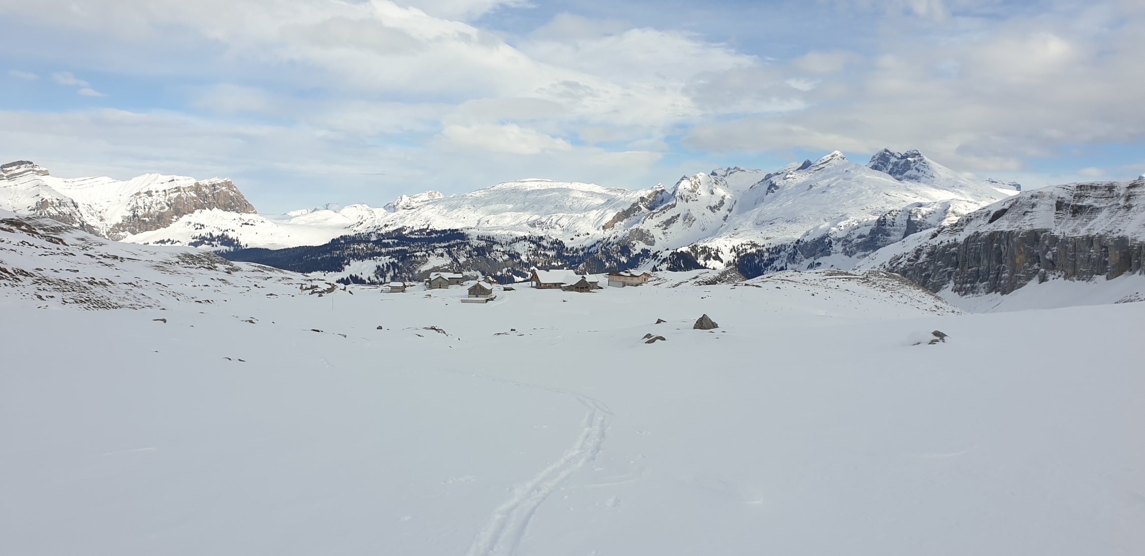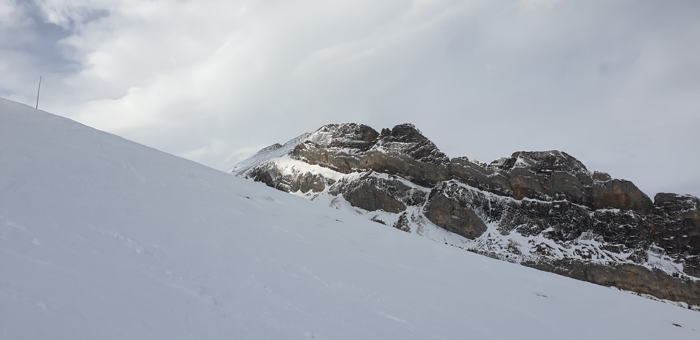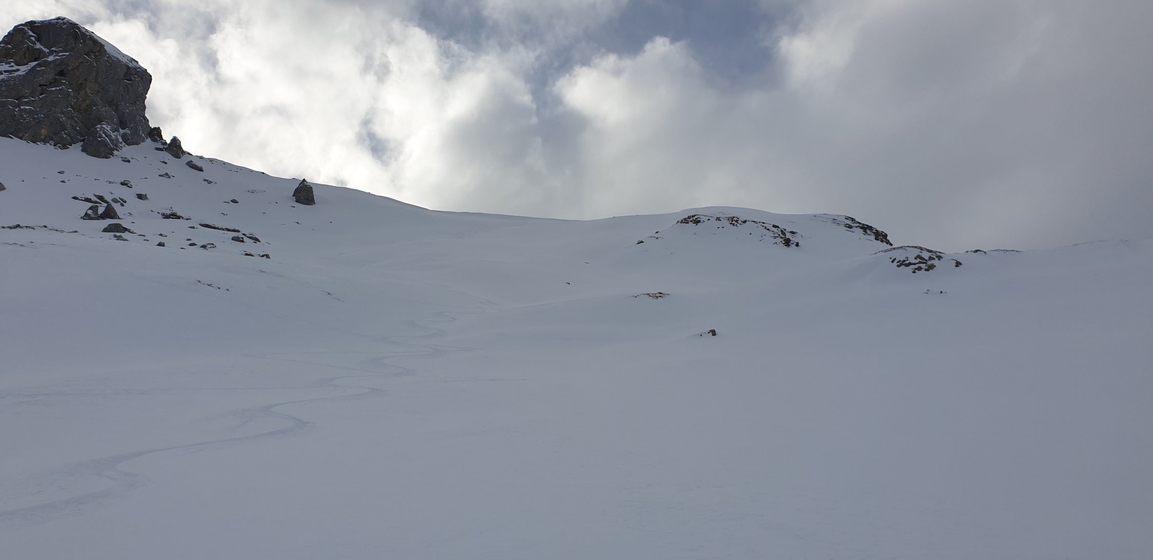 Bei der Abfahrt vom Rossgrat noch ca.20 cm. Pulverschnee, aber leider sehr diffuses Licht, ab Gander Fur wieder gute Sicht.