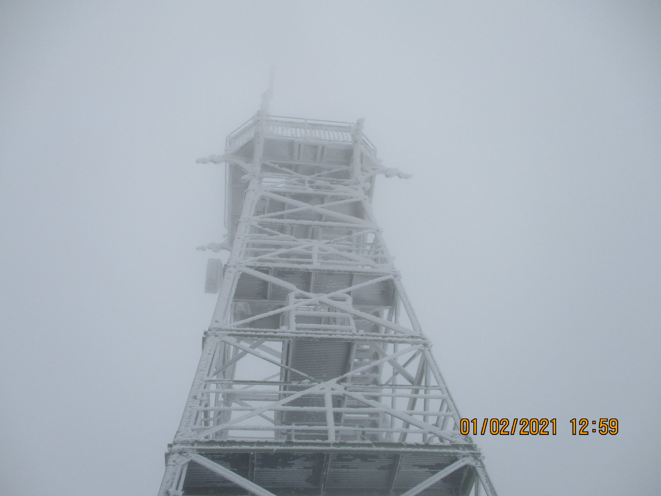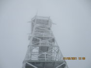 Dem Talnebel entronnen befand ich mich während des Aufstieges eine gute zeitlang eingeklemmt wie in einem Sandwich zwischen zwei Wolkenschichten. Bei so etwa 900 oder 1000 m ging es dann gnadenlos in die obere Wolkenschicht hineine. Auf dem Gipfel stand ich dann vollends in der Grütze. Da änderte auch der Aufstieg auf den 20 m hohen Aussichtsturm nichts, der heute nur proforma war. Auf dem Weg zum Blauenhaus wird der fast 100 m hohe Sendeturm passiert, ich habe ihn im Nebel glatt übersehen ...