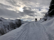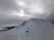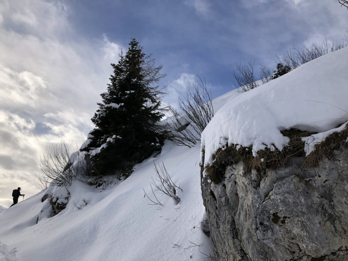 Vom Parkplatz bis zur Alp Mittelsass ist die Alpstrasse gut begehbar. Je nach Ehrgeiz sind auch direktere Abkürzungen möglich. Ab Mittelsass gute Spur bis auf den Gipfel. In den Mulden hat der Föhnsturm Triebschnee eingeblasen, der auslösbar ist. Der Pulverschnee ist z. T. gedeckelt. Generell hat es eher wenig Schnee.