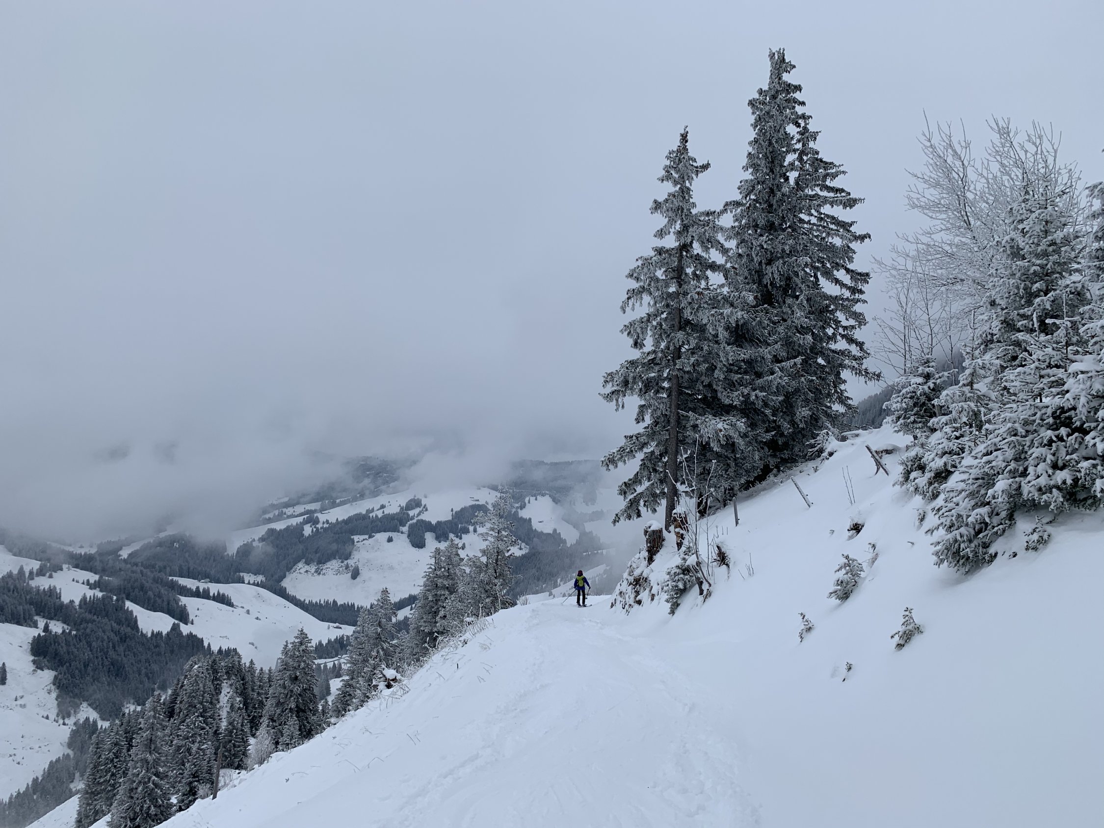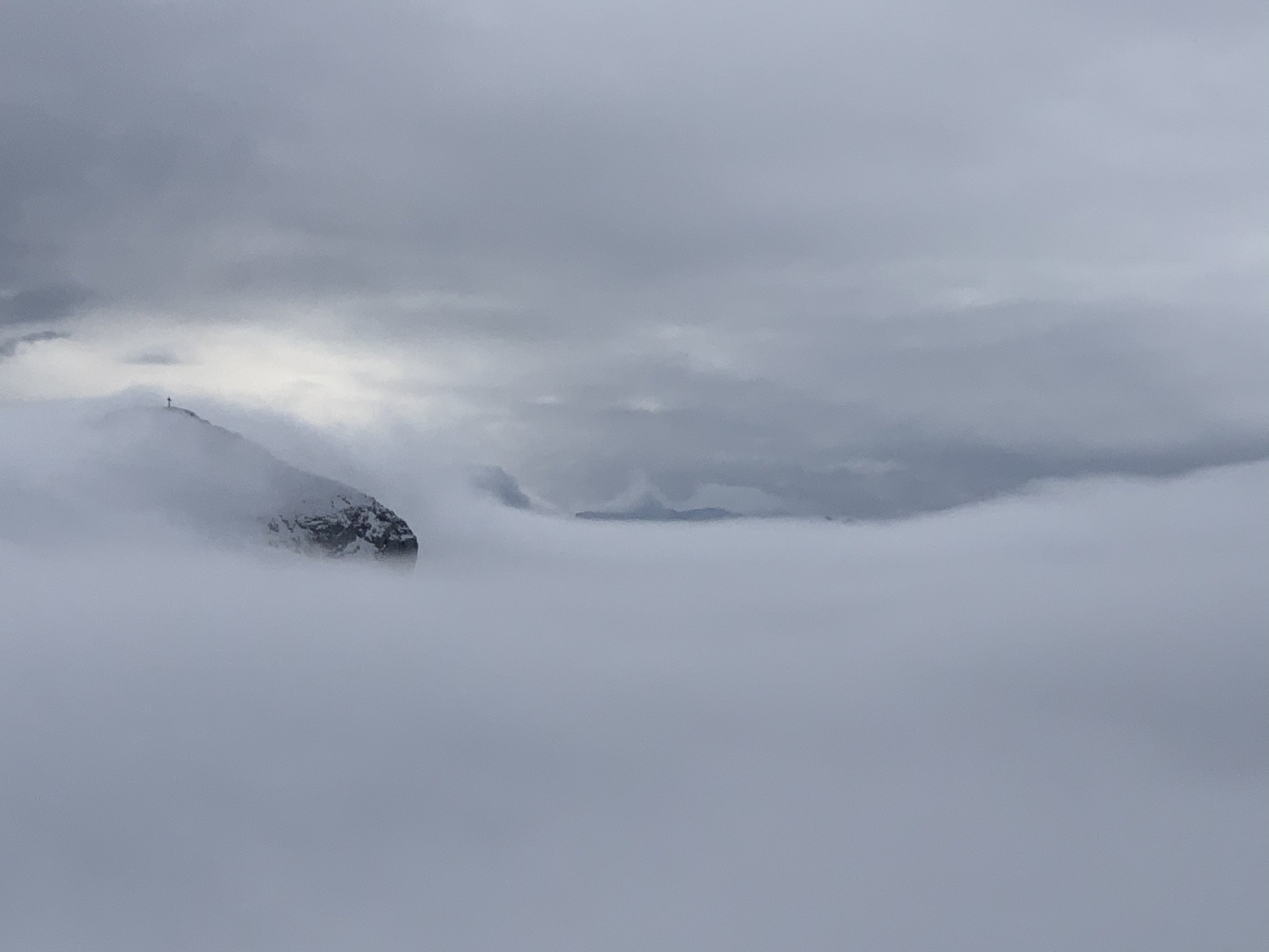 Nebel, nur die Bergspitzen schauten rasch raus.