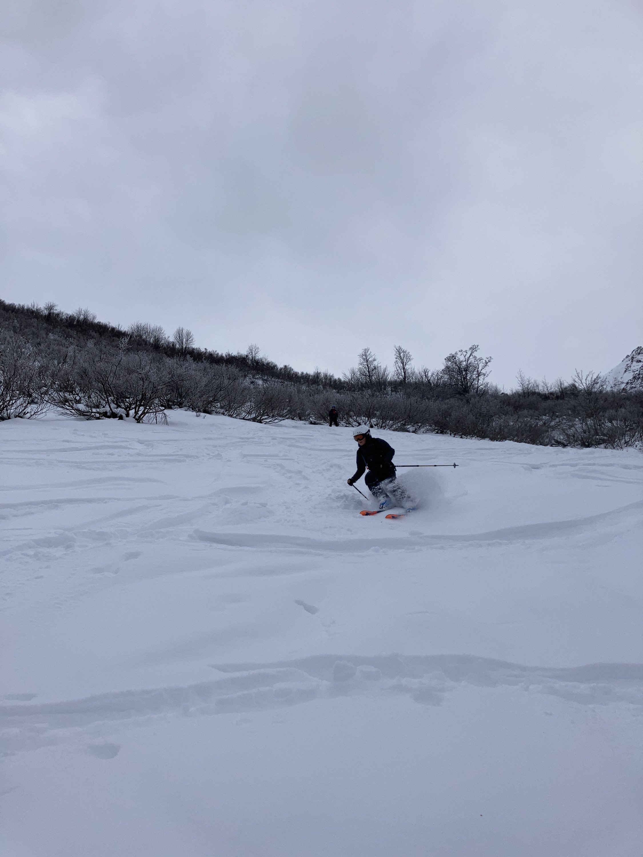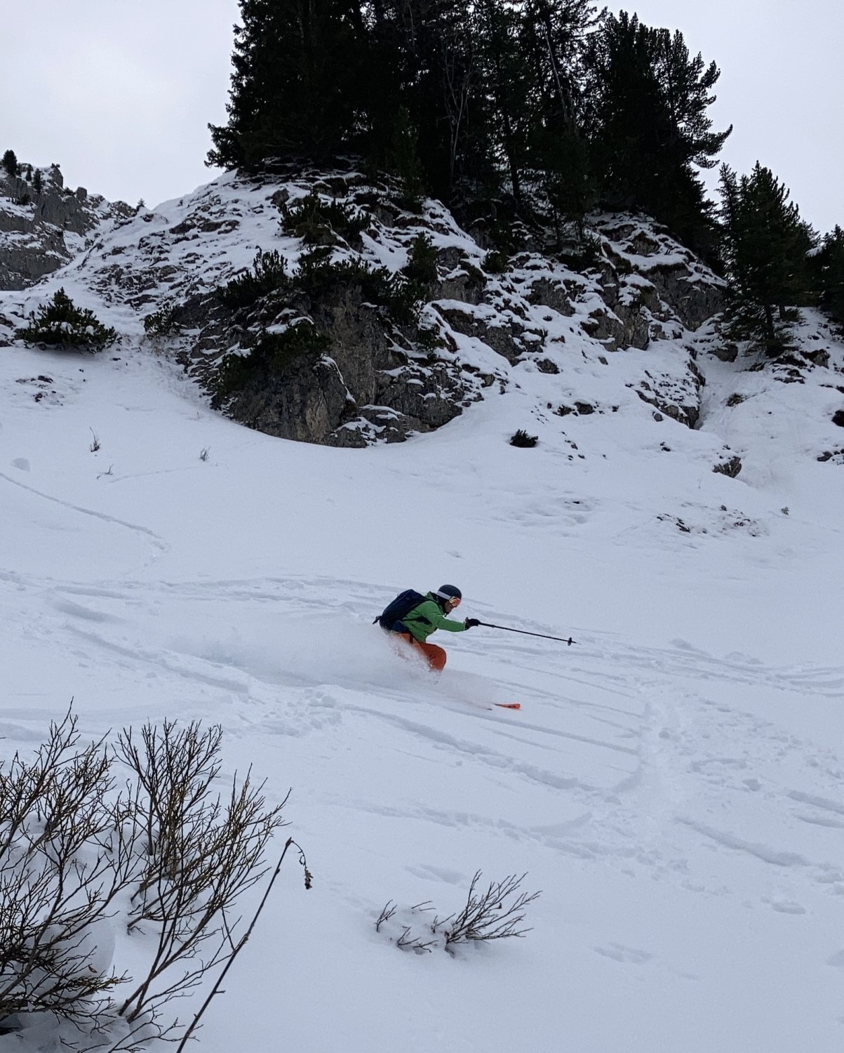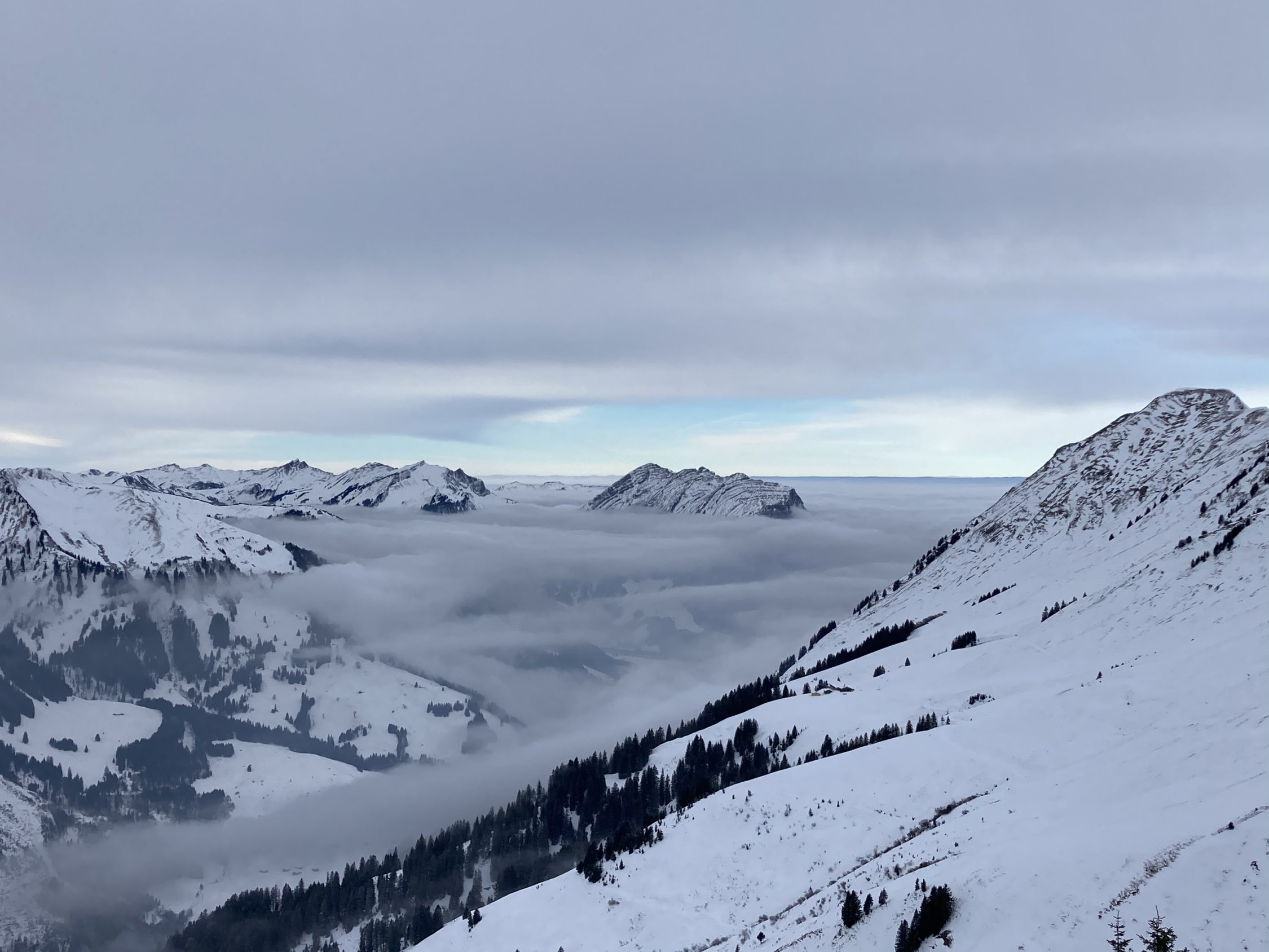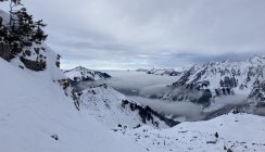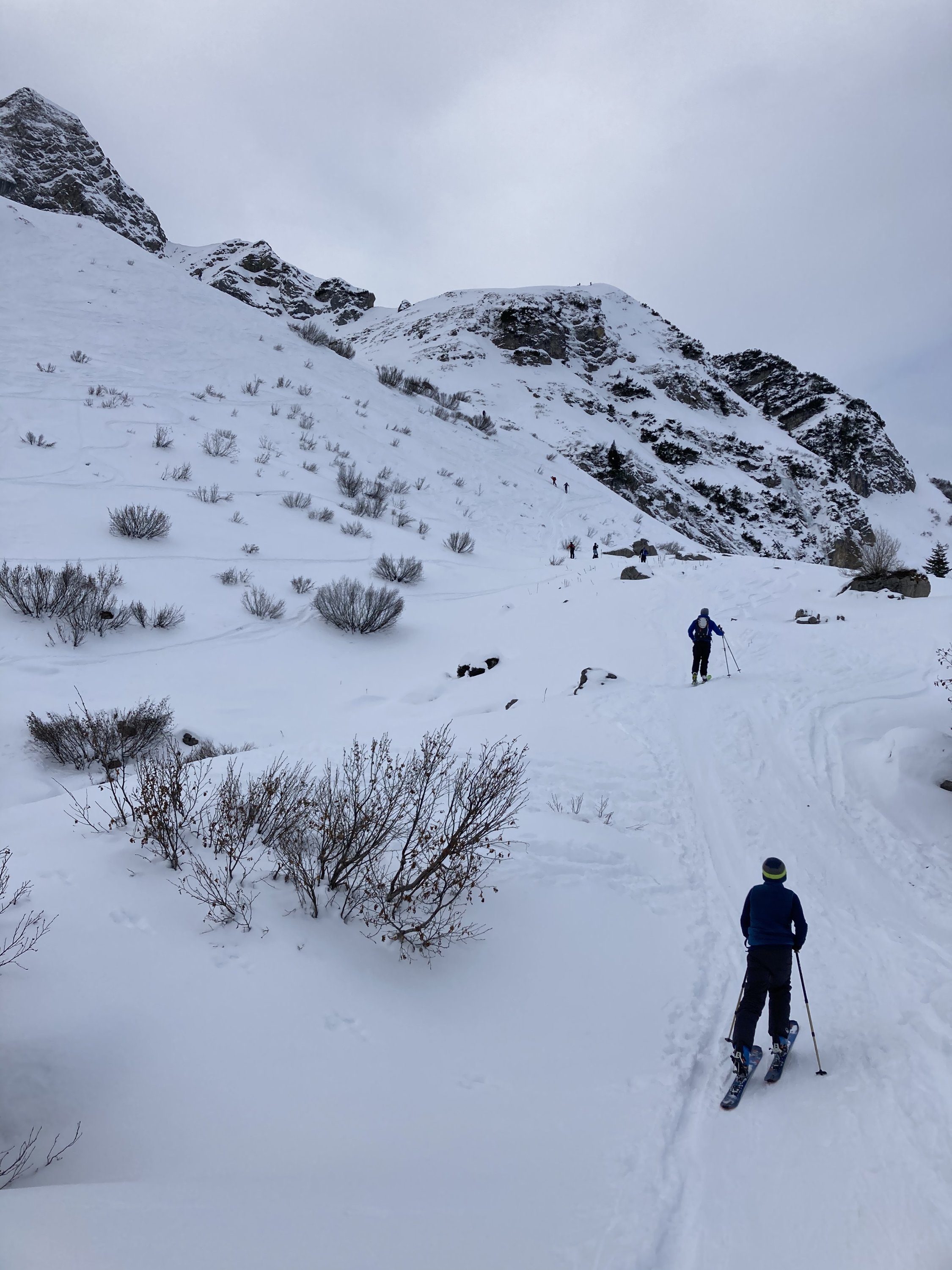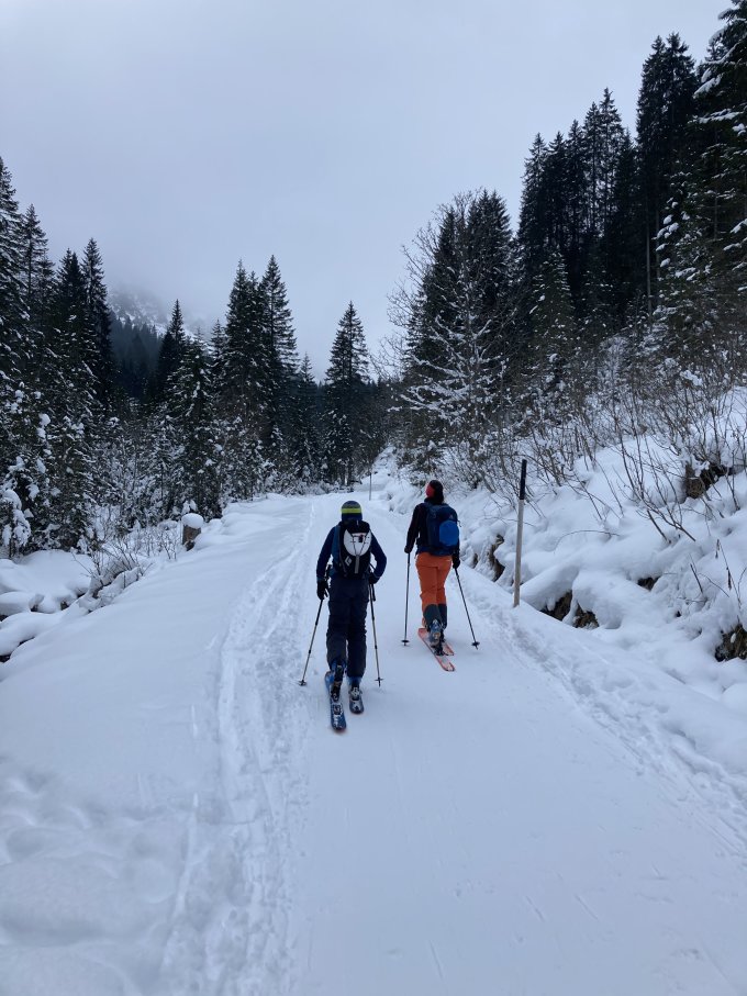 Die Bedingungen sind gar nicht so schlecht. Natürlich derzeit überall noch zu wenig Schnee, aber das ist ja allgemein bekannt. Gamsfuss aber erstaunlich gut machbar. Start am gebührenpflichtigen Parkplatz in Bad (Tag 6,-). Weg zur Bärgunthütte sehr gut. Lediglich in der bewaldeten Steilstufe oberhalb der Bärgunthütte ist es schneetechnisch etwas mager. Danach aber wieder sehr gut bis zum Gipfel zu gehen. Steilstufe oben ebenfalls problemlos machbar. Schneequalität sehr gut und immer noch schöner Pulverschnee. Abfahrt gut und verschiedene Möglichkeiten eingefahren. Wir sind um die Älpelespitze in Richtung Höferspitze herumgequert und dort abgefahren. Lediglich mal kurz für etwa 40m durch die Büsche kämpfen, aber ansonsten schön zu fahren.