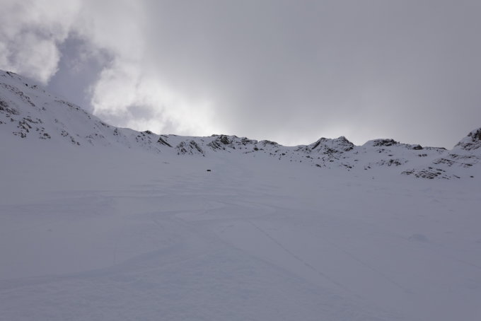 Harscheisen ab 2500m sehr hilfreich. Schlüsselstelle um auf den Grat zu kommen mit gutem Trittschnee, Toller Pulverschnee in den weiten Hängen ober halb von 2200m. Eine Hochnebeldecke zwischen ca. 1900 und 2200m reduzierte das Abfahrtsvergnügen etwas. Unten hat es relativ wenig Schnee und es ist daher etwas ruppig