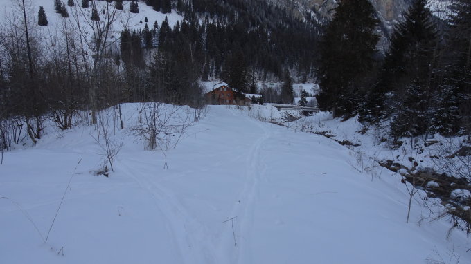 Es hat ab Altem Schulhaus 1173m in Schwenden genug Schnee für den Aufstieg