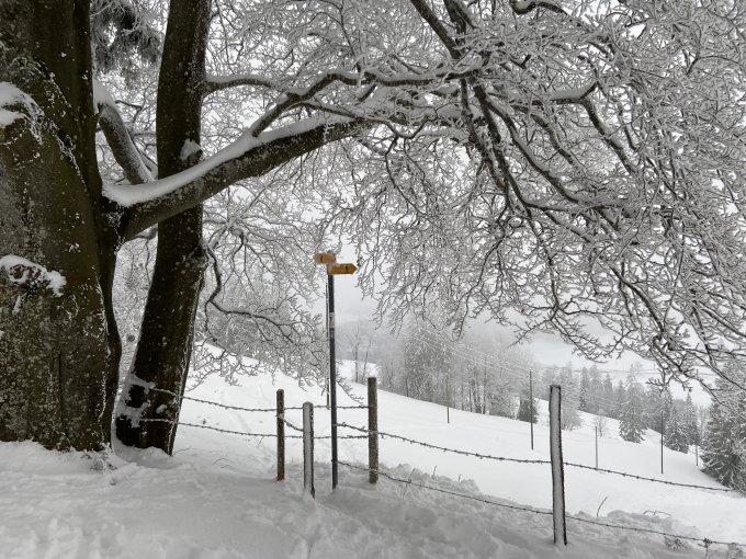 Schöne Nachmittagstour, die sich mit ÖV gut angehen lässt. Mit PKW ab Wanderparkplatz Kloster Schönthal, einige Schritte Richtung Langenbruck zurück und links den Hang hinauf. Trifft dann auf die hier beschriebene Route. Keine Tourengänger im freien Gelände unterwegs. Hindernisse (Weidezäune, Hecken etc.) können gut durchgangen werden. Bis auf die Traverse am Chilchzimmersattel und der Waldpassage, weist diese Tour ein gutes Gefälle ohne nennenswerte Gegenanstiege auf. Erst ab dem Chilchzimmersattel hat es die üblichen Spaziergänger, die bis zum Chilchzimmersattel mit dem Auto hochfahren und eine Runde um die Belchenflue drehen. Schöner Blick im Aufstieg auf die Chilchzimmer-Passstrasse und die Höfe Kehr und Kilchzimmer. Rund um die Belchenflue ein traumhafter Winterwald.