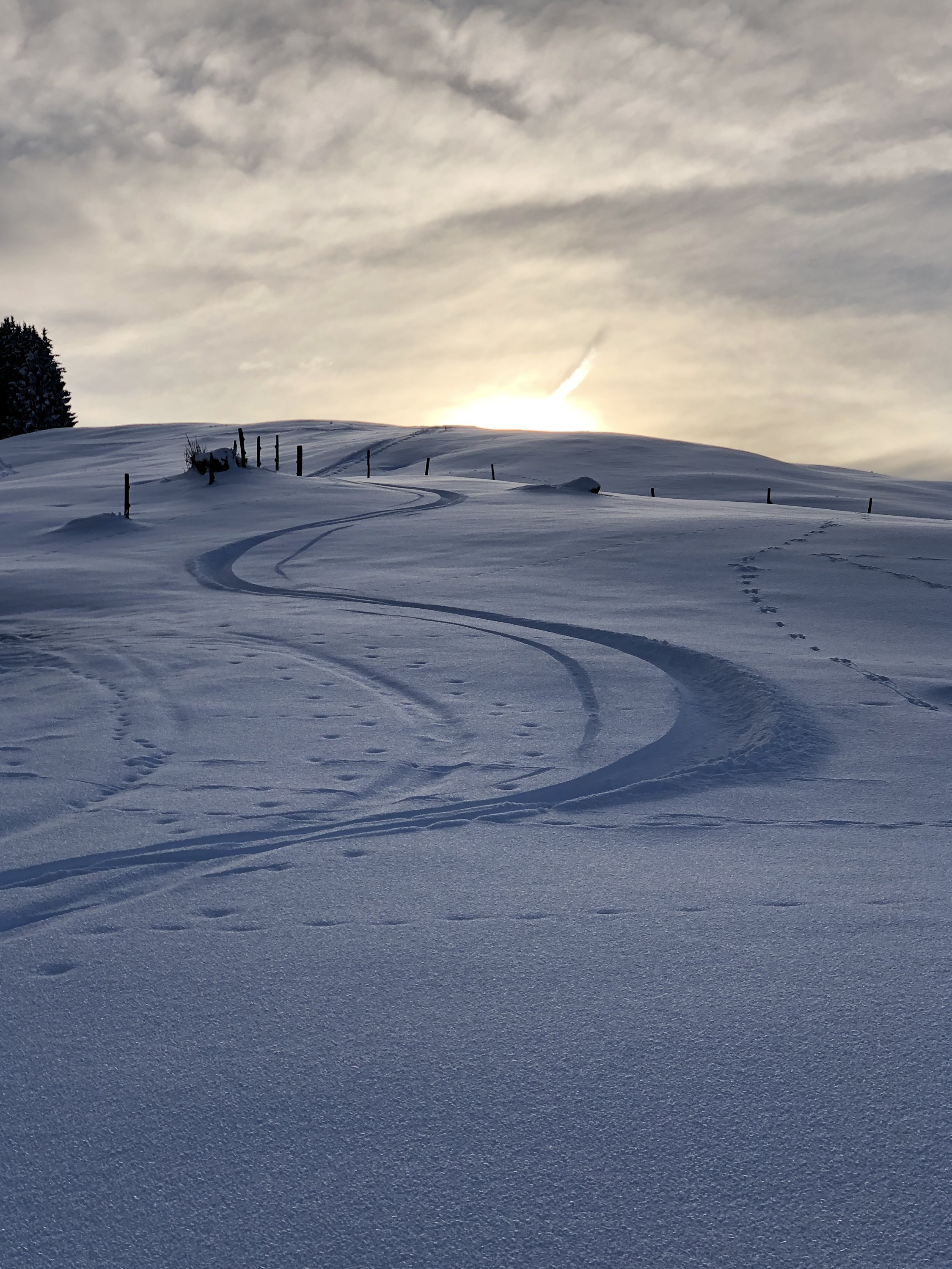 Sehr schöner, durchgefrorener Pulverschnee auf der ganzen Route. Das Gebiet ist vergleichsweise gut eingeschneit und dank den kalten, nebligen Vortagen herrrschte ein richtig winterliches Ambiente.