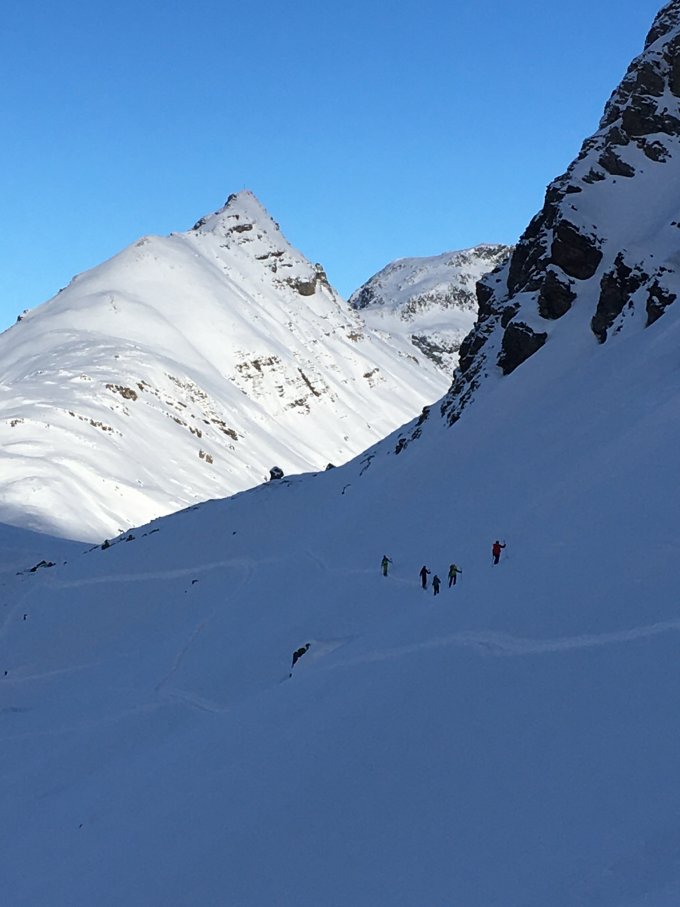 Start um 9 Uhr Parkplatz La Veduta, minus 16 Grad, Südostwind und sehr kalt. Spur vorhanden bis Schulter und Traverse, bis Punkt 2633 und Mulde Höhe 2800 m nach Südhang zwei Spuren. Ich habe die steile westliche Spur genommen, war teilweise verblasen. Ab Mulde wieder zwei Varianten bis Gipfel. Ab 2800 m Sonne, ab 12 Uhr viele Schleierwolken, die die Sonne etwas abdeckten. Abfahrt in bestem Pulverschnee bis Leg Grevasalvas 2390 und Aufstieg mit Felle zu P. 2449 und Abfahrt zur Julierstrasse. Im oberen Teil viele Spuren, ab Höhe 2750 m hat es schön Platz für eigene Spuren. Toller Schnee. Imposant der Aufstieg vis a vis der Nordwestwand des Piz Lagrev. Etwa neun Tourengänger am Berg.