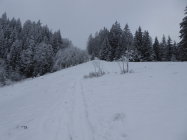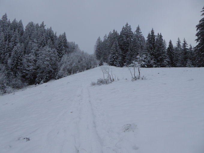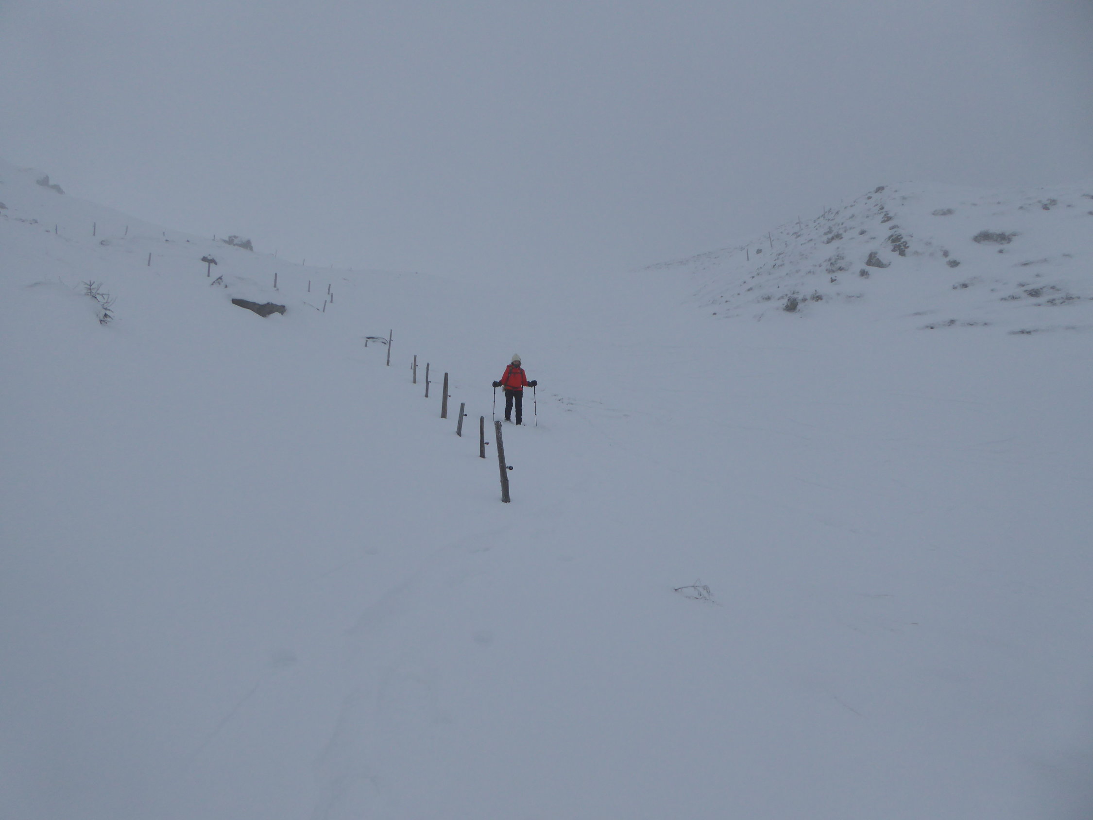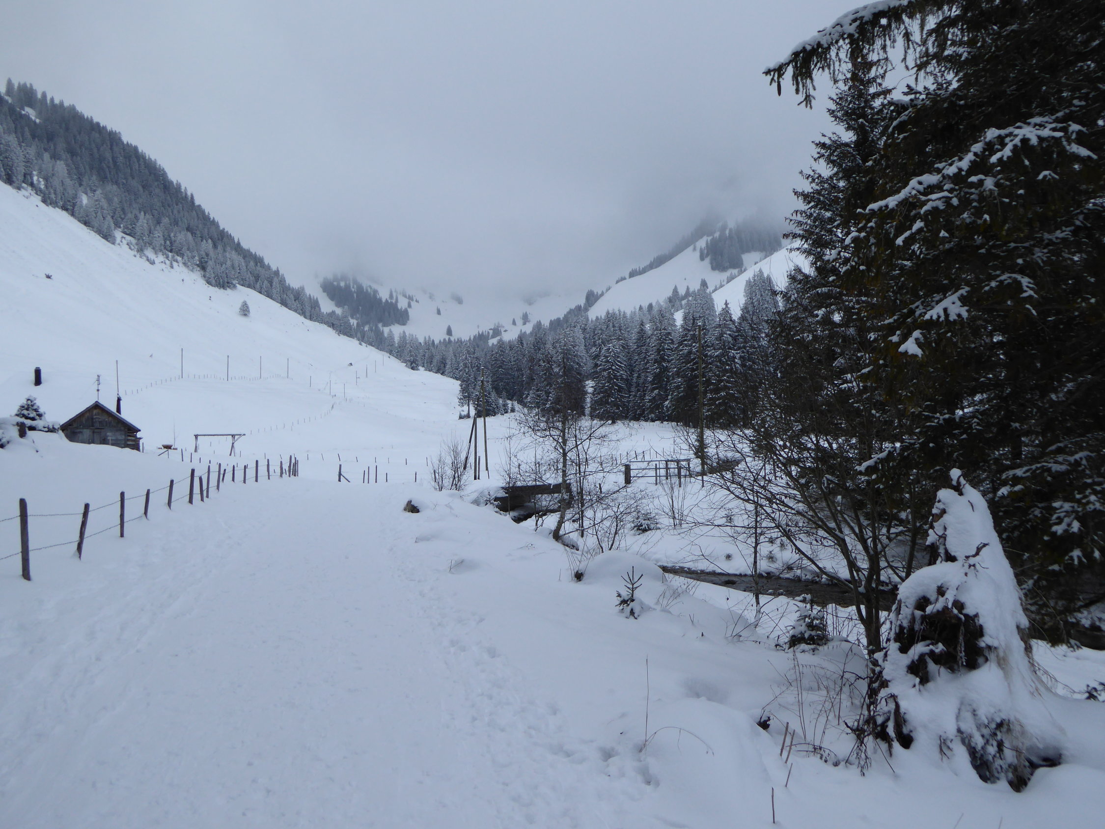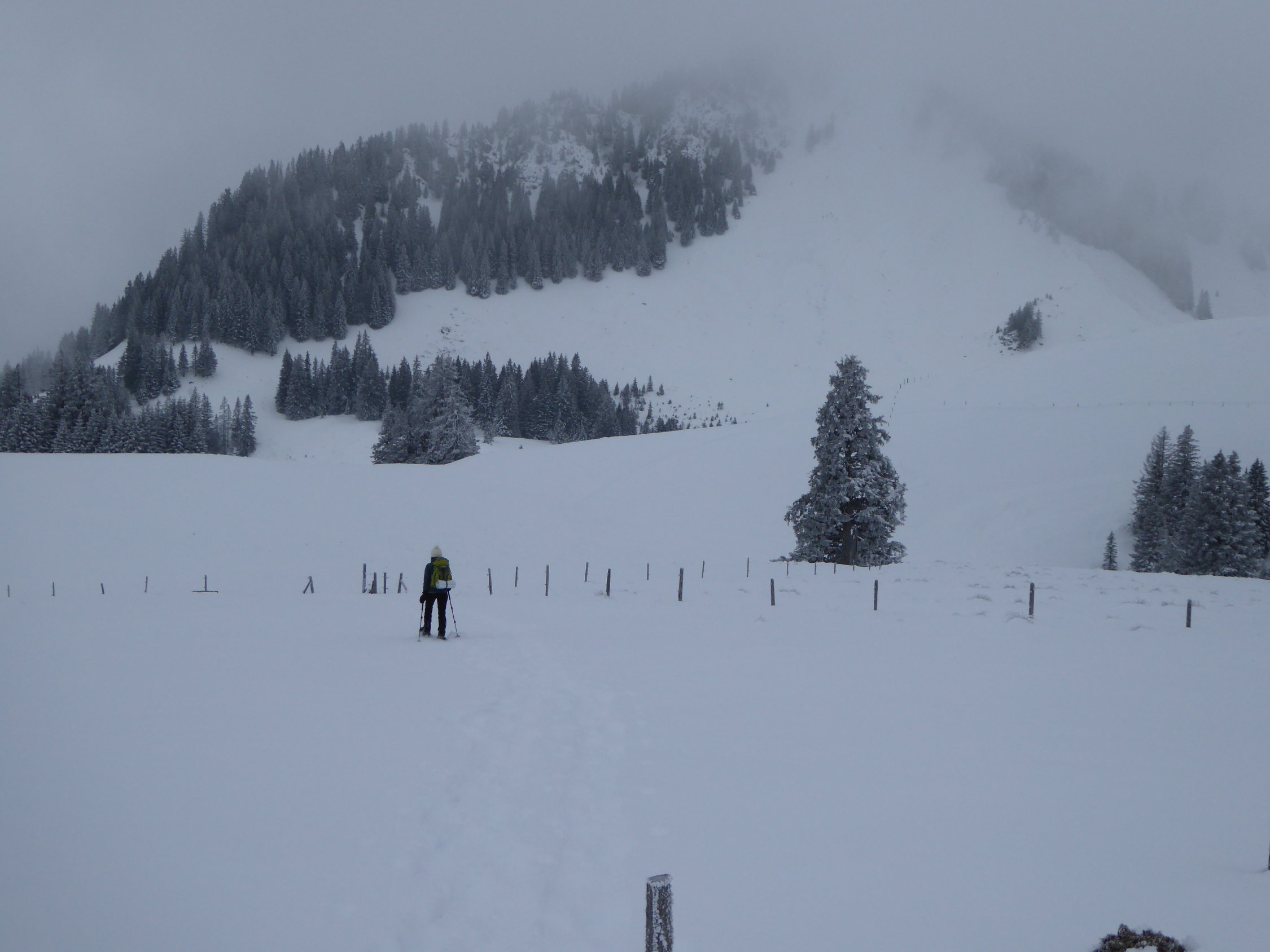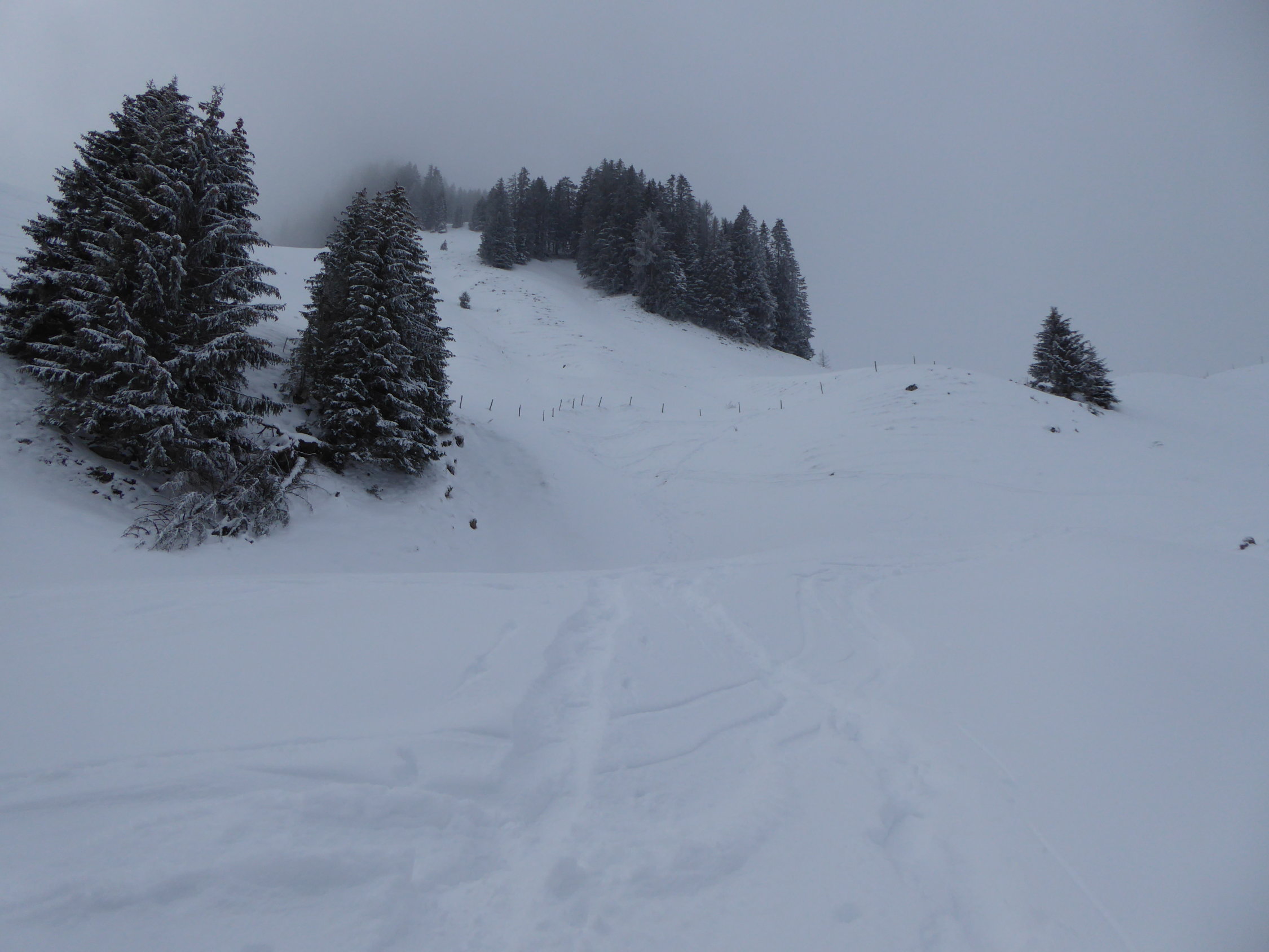 Genügend Schnee am Ausgangspunkt. Wo der Wind nicht gewirkt hat, gibt es schönen Pulver. Im Moment besser für Schneeschuhtouren als für Skitouren.