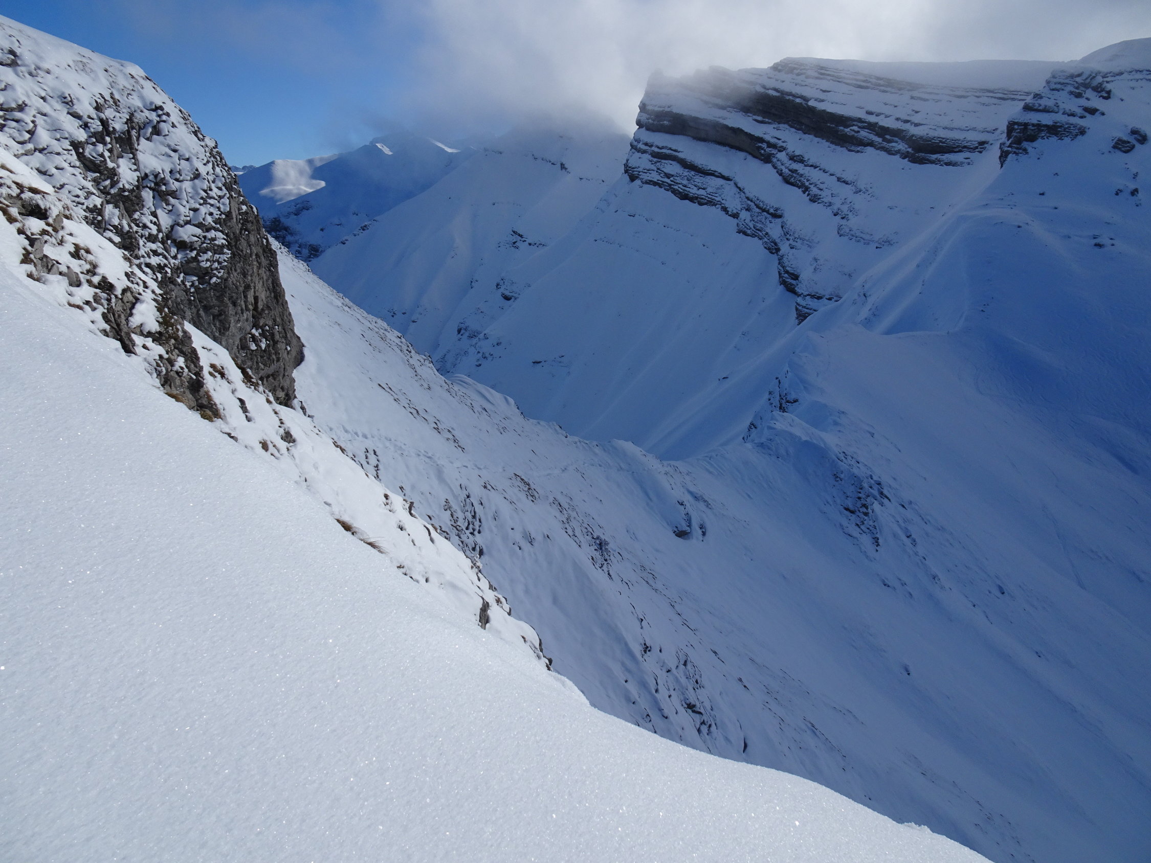 Nach der Abfahrt vom Druesberg haben wir bei Chalberalpeli ca P. 1822 wieder angefellt. Der Aufstieg ging recht gut, aber wie am Forstberg/Druesberg immer wieder mal abgerutscht.