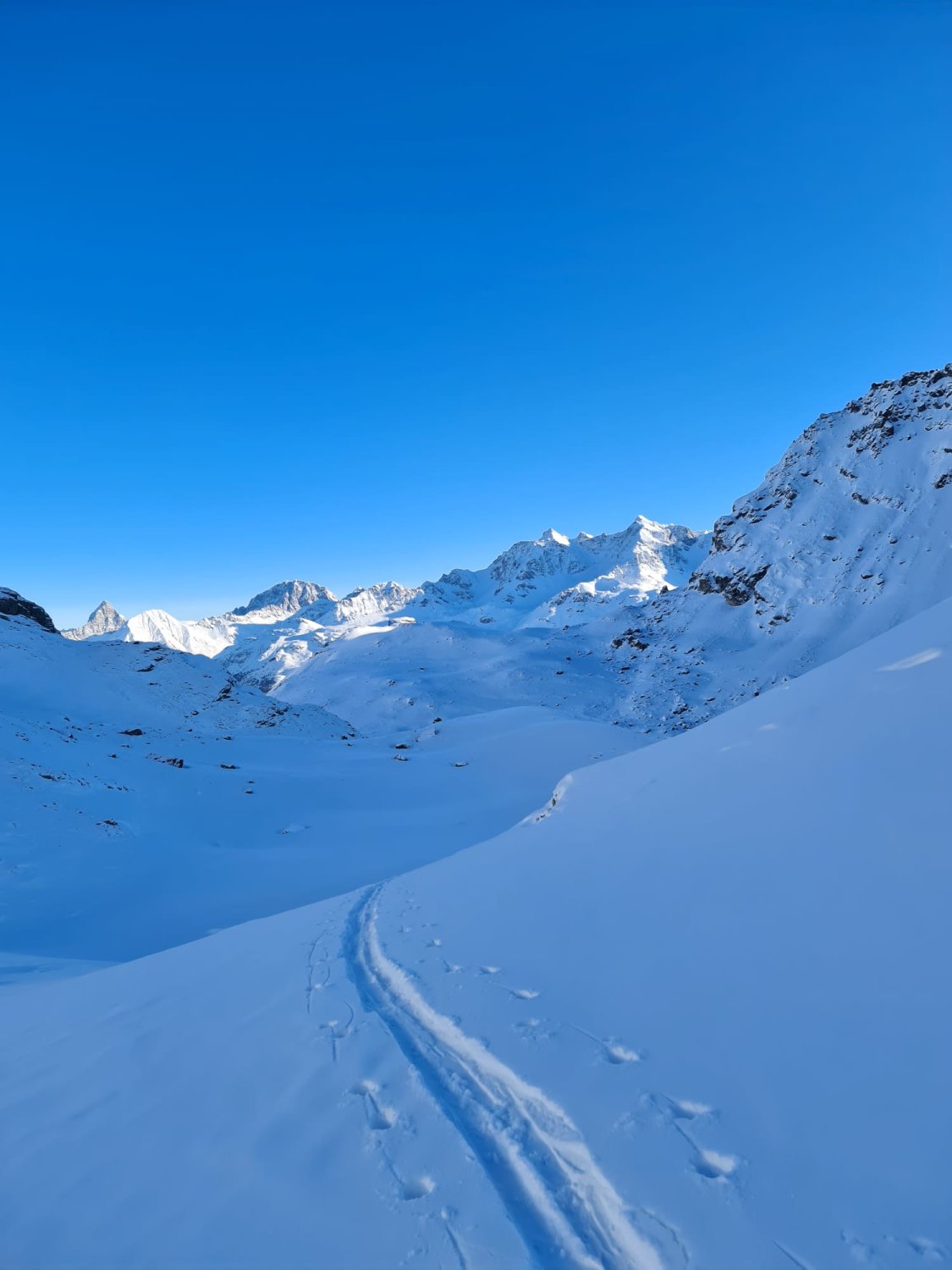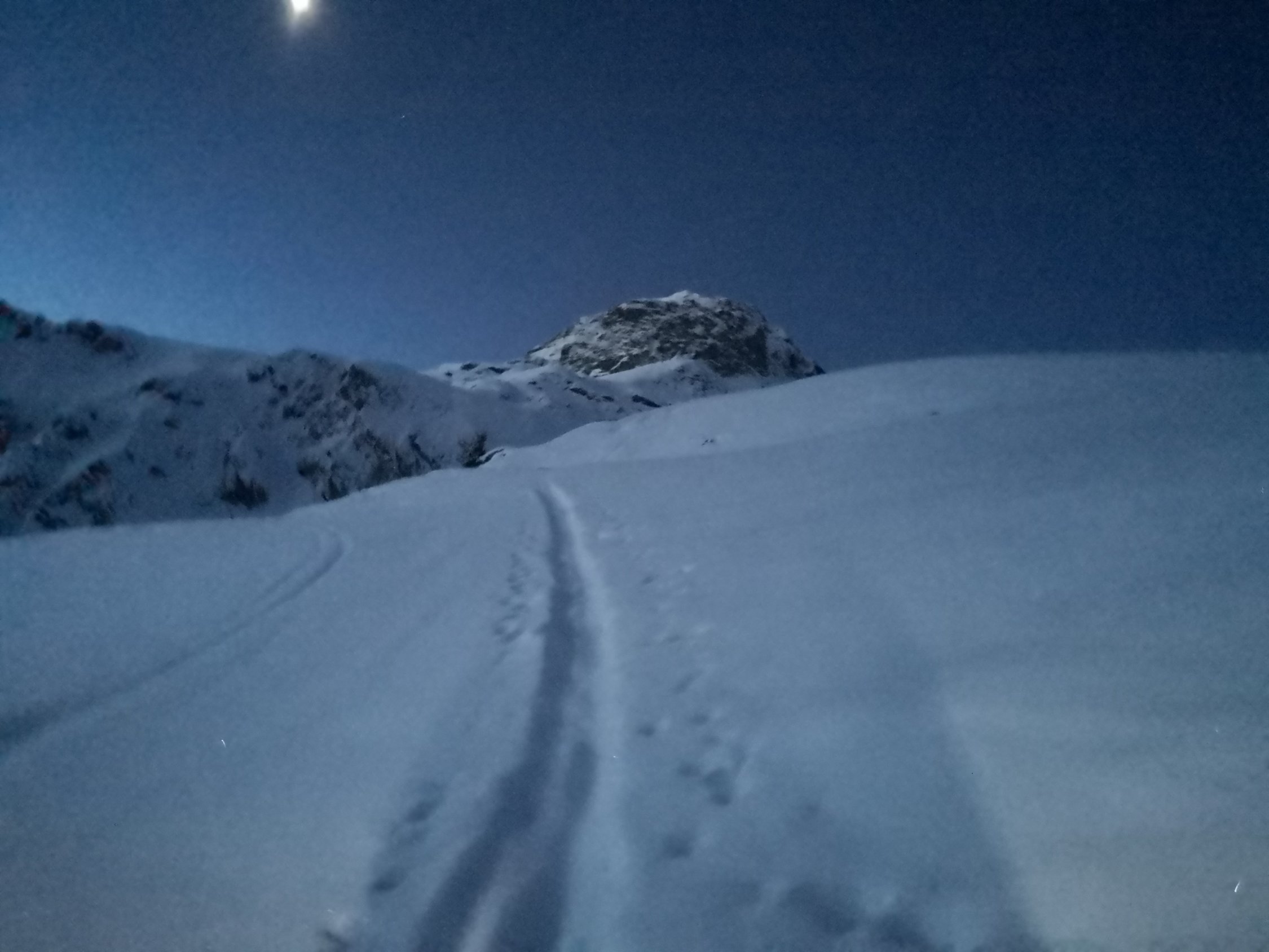 Vom Lai Marmorera bis Zum Gletscher auf etwa 3000m durchgehend Pulver Schnee. Danach bis zum Skidepot auf 3250m abwechselnd Pulver und windgepressten Schnee.