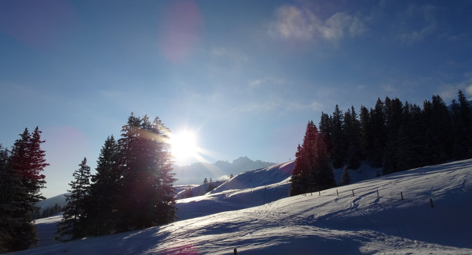 Für den Aufstieg hat es genügend Schnee. In der Abfahrt muss man den Rinnen folgen.