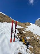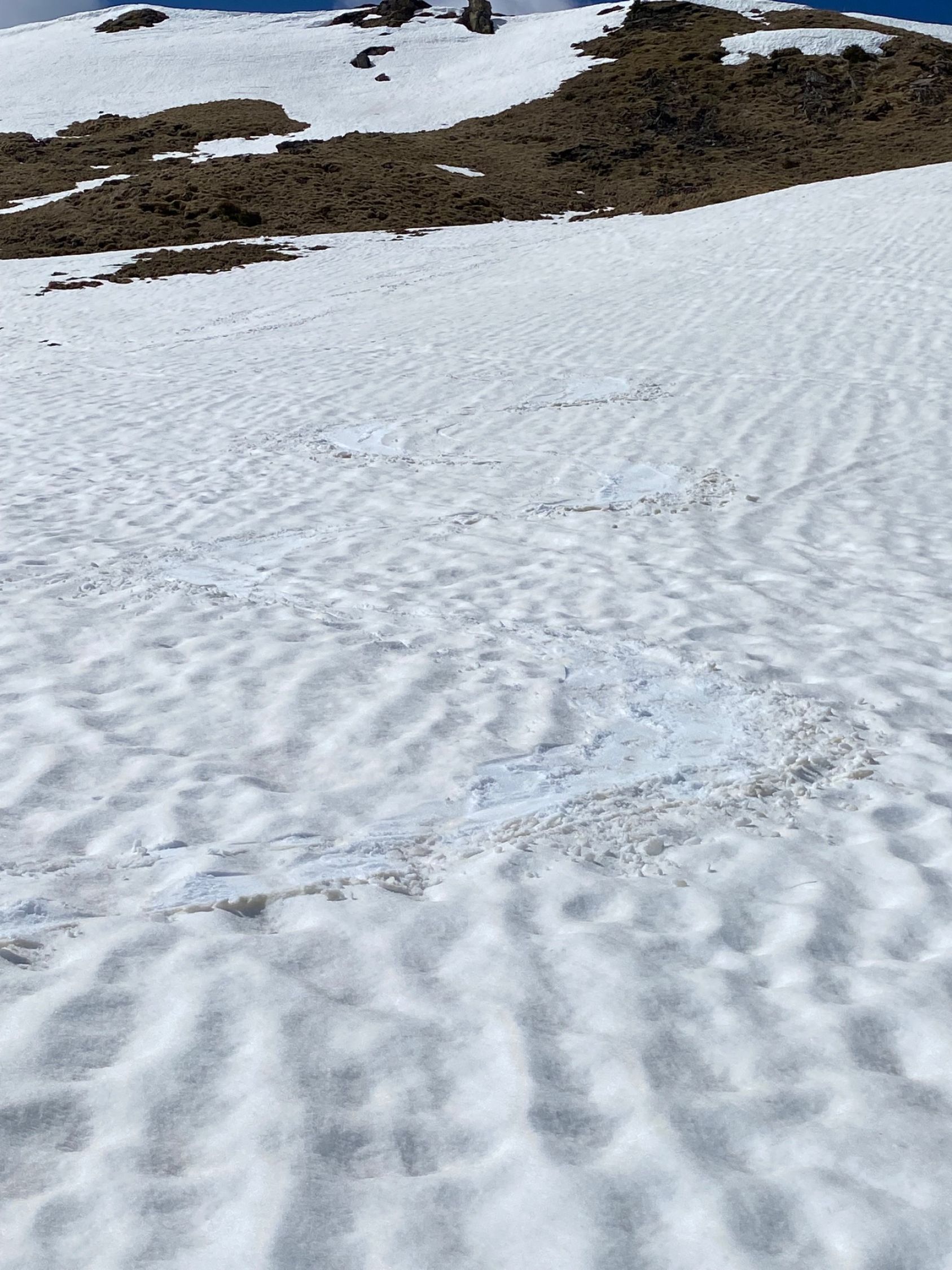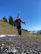Summa summarum: ca. 350hm Ski hochtragen, kanpp 300hm Schnee, ca. 150hm zu Fuss.
