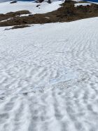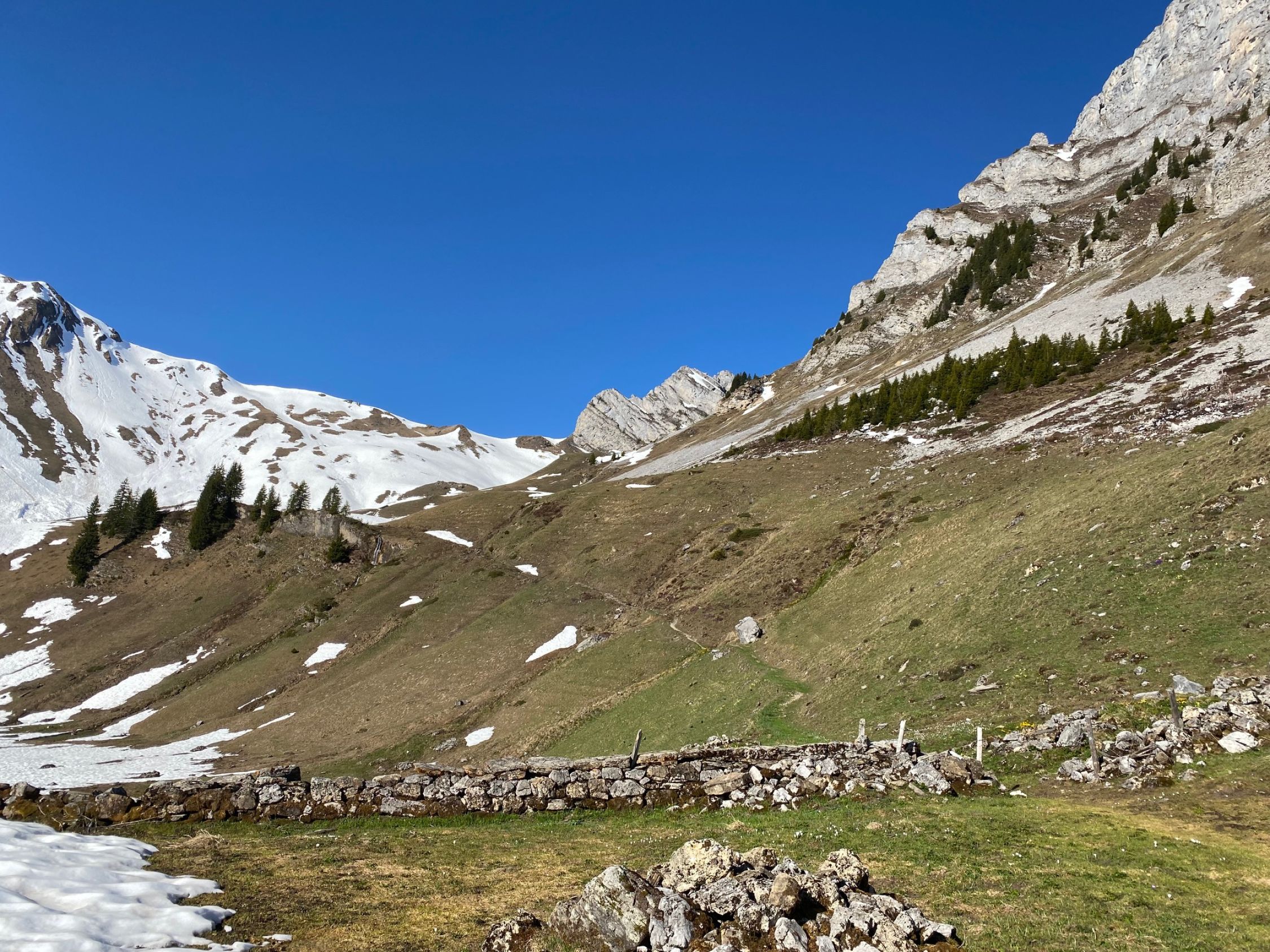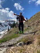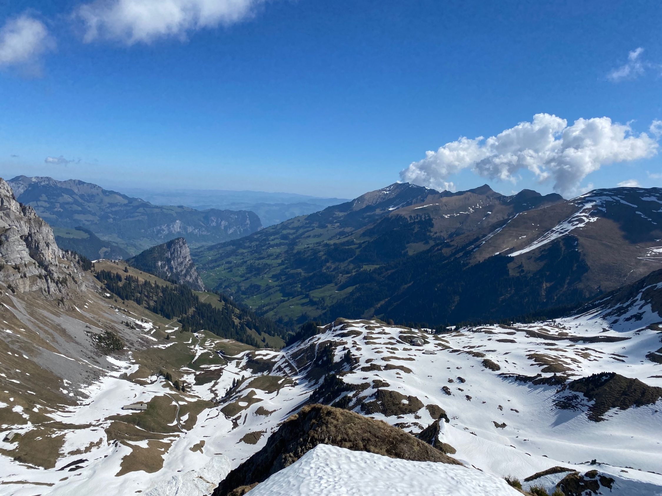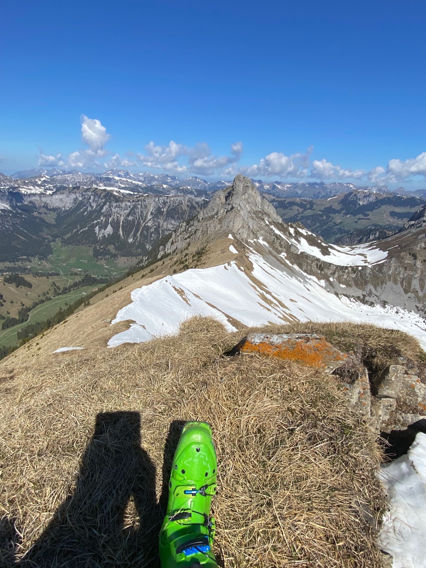Machbar: Da von Ramse die Ski 350hm (bis1820m) mit Trekkingschuhen hochgetragen (begleitet von wundervollem Vogelgezwitscher), ab ca. 9:30 dann im Schnee. Der war stellenweise so weich, dass ich 30cm eingesunken bin, an anderer Stelle unter einer trügerischen 2cm Sulzschicht hart gefroren, so dass man in den steileren Stücken fast Harscheisen gebraucht hätte. Schnee lag dann bis 30hm unterhalb des Gurbssattels. Dort Skidepot und zu Fuss zum Gipfel. Um den Kennern zuvor zu kommen, als solchen habe ich den Punkt 2238m definiert, und mir die letzten etwas hatschigen 35hm geschenkt. Der Blick zum Mittelmeer ist auch dort durch Cheibehore und Männlieflue versperrt. Abfahrt gegen 11:15 im oberen Teil noch erstaunlich gut, nach unten zunehmend weicher.