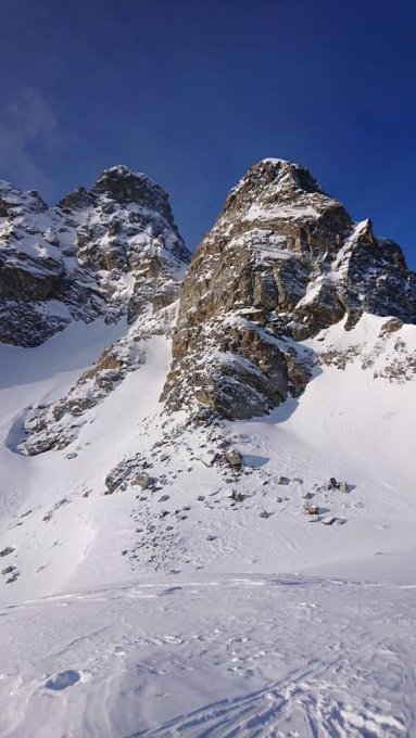 Bitter kalt, oben - 21Grad, dafür fast windstill! Pulver nur im obersten Hang,Steilrinne rechts, waren wahrscheinlich gestern schon ein paar da und haben da schon ein wenig aufgeräumt!