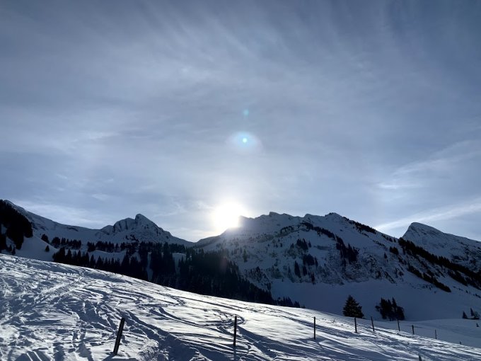 Gut angelegte Aufstiegsspur - bis zum Gipfel ohne Harscheisen. Beim Start -14°C (10.00 Uhr) auf dem Gipfel beinahe windstill. Bei der Abfahrt ist wegen der geringen Schneemenge Vorsicht geboten. Wir sind vom Gipfel rechtshaltend abgefahren. Es hat für diejenigen, welche das Gebiet kennen, Pulverzonen vom feinsten. Wir sind ohne Steinkontakt zum Parkplatz gefahren. Was auffällt, es sind heute sehr wenige Tourengänger auf dieser Route unterwegs gewesen.