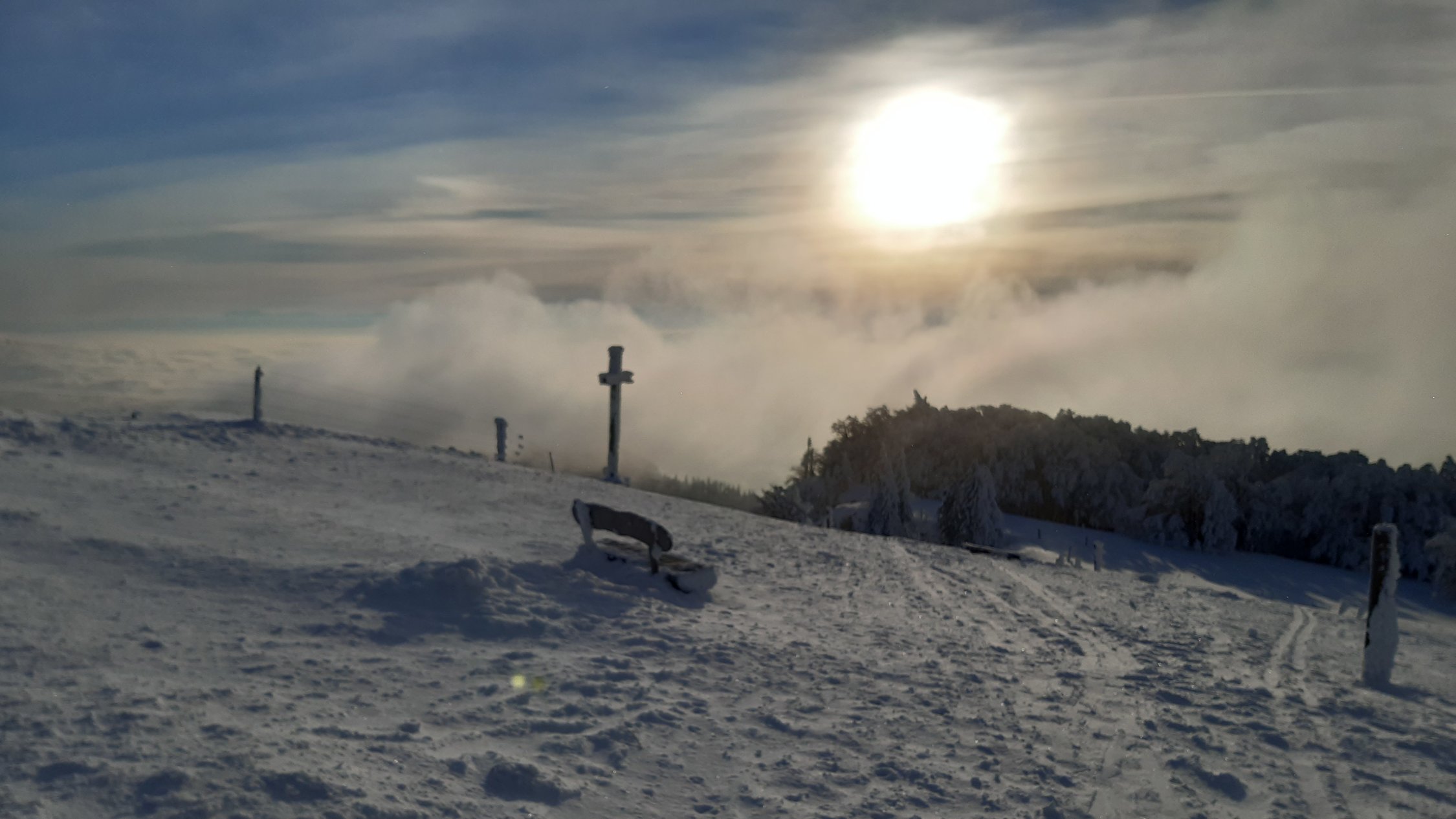 Für Jura Verhältnisse gute Bedingungen. Ab P der Ruine Balmberg Schnee (fast bald ins Eis übergehend da sehr platt getrampelt. Beim Abzweig durch den Wald viel Schnee und gute Spur. Kurz vor dem Gipfel dann dererwartete Wind und endlich mal wieder Sonne. Abfahrt Nordseitig tiptop und zurück über das "skigebiet" zum P.