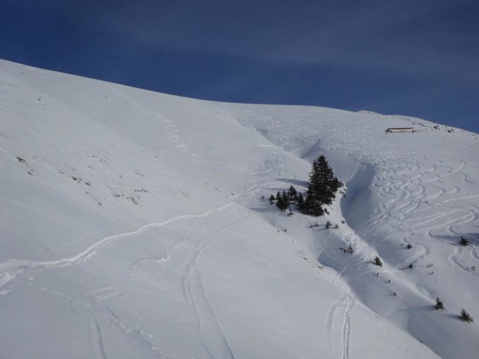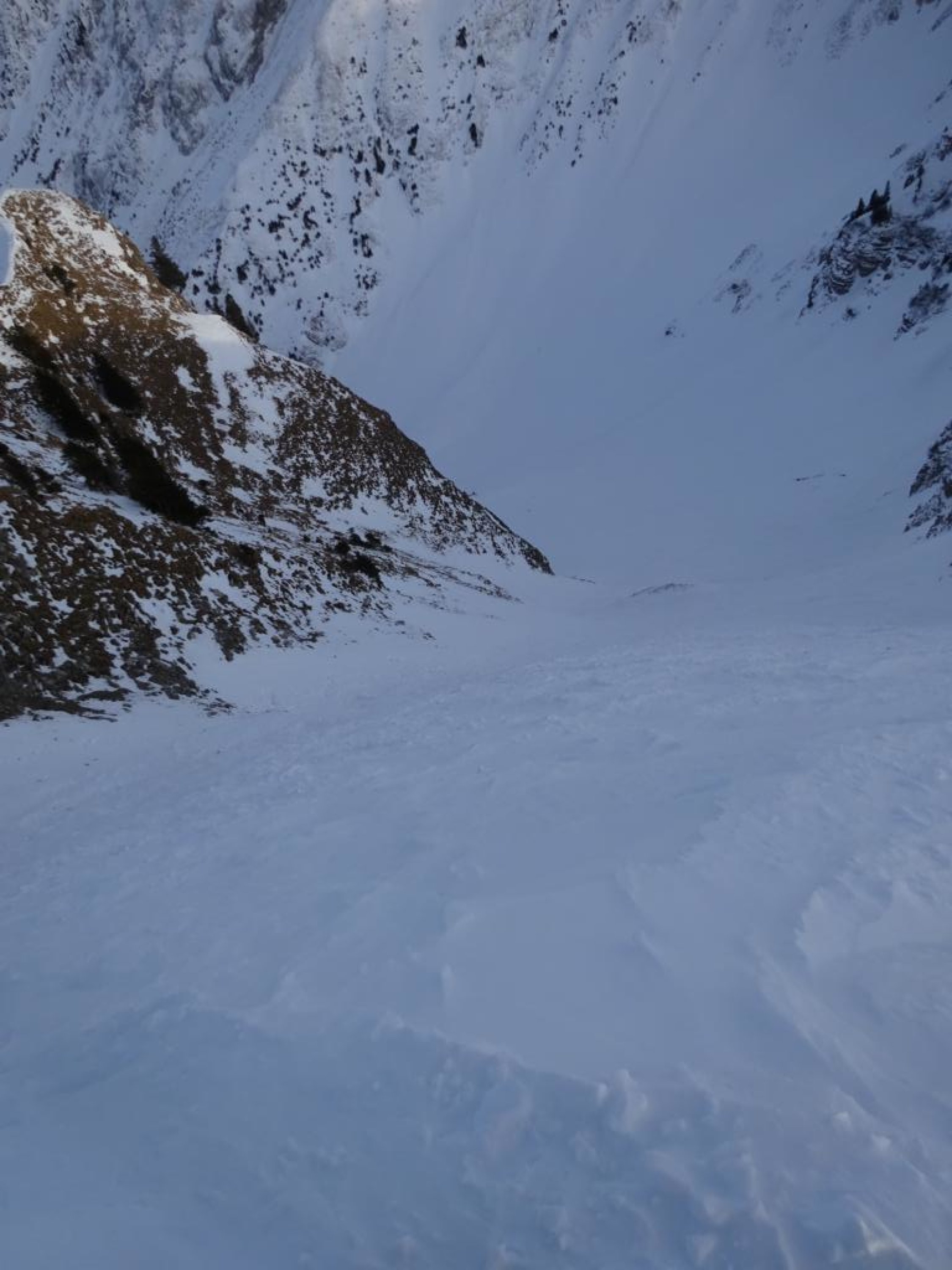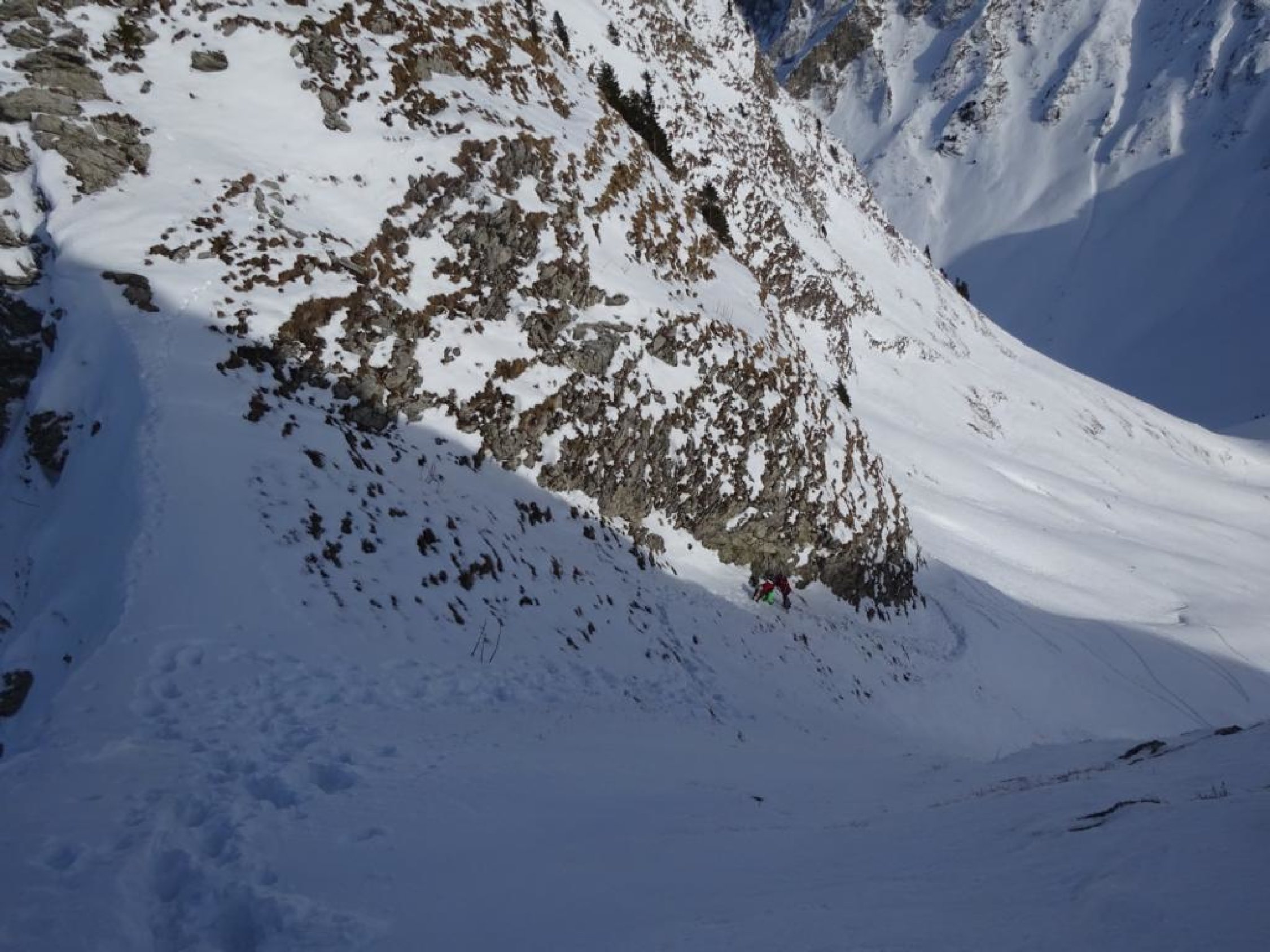 Abfahrt Südwesthang Schibe ausgezeichnet! Abfahrt Ost-Couloir Märe etwas ruppig, weiter unten gut, aber ein paar versteckte Steine, wo es abflacht wieder ausgezeichnet. Insgesamt gut.