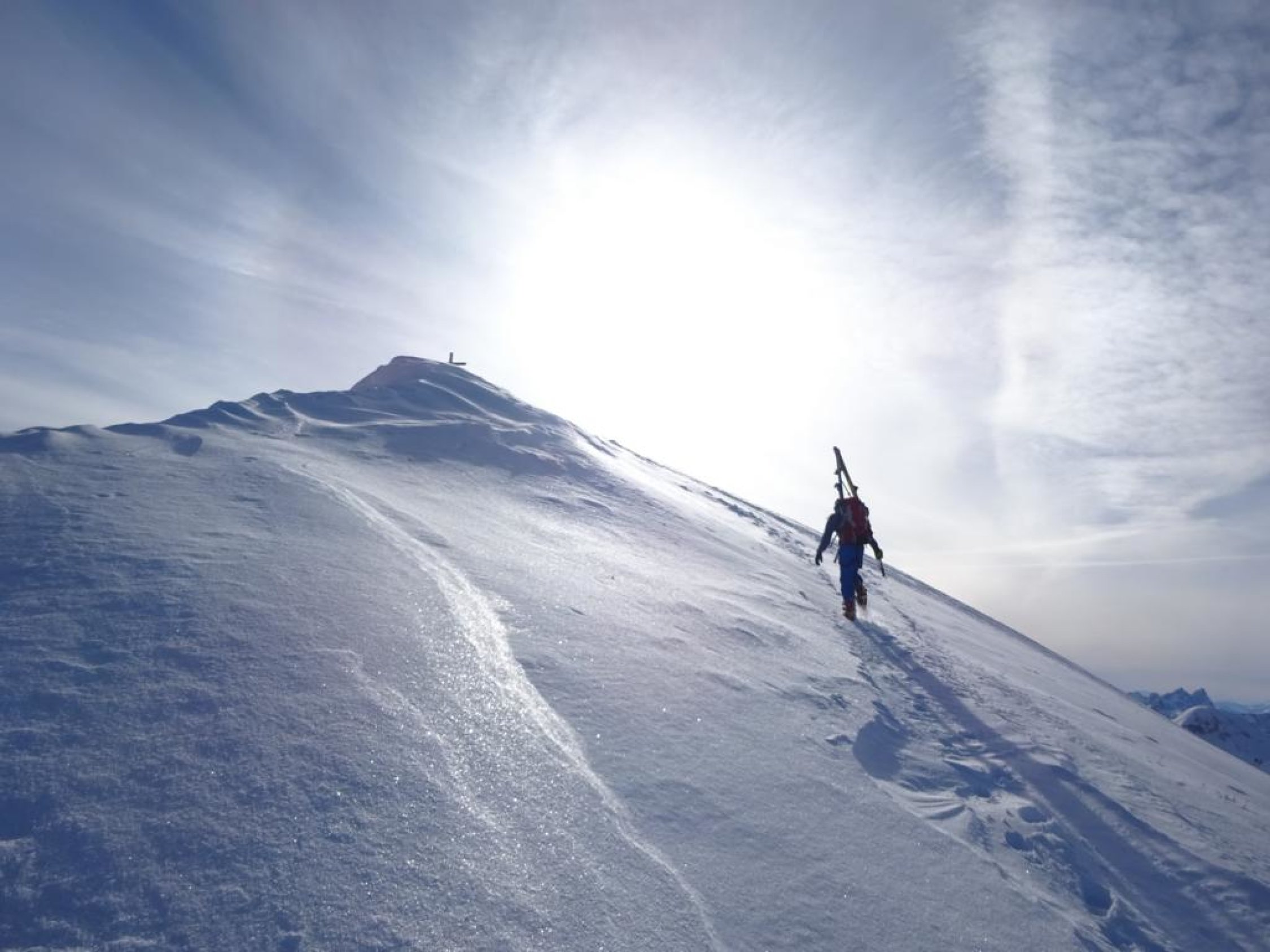 Der Grataufstieg zur Schibe ist ca. T4+ und verlangt bei Schnee zwingend Steigeisen und Pickel.
