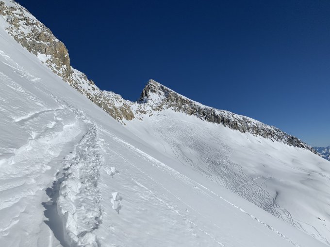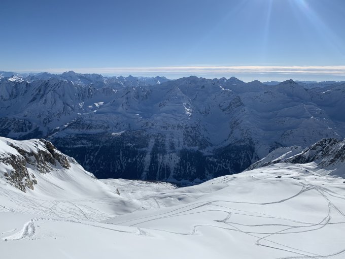 Besser geht es nicht. Wie mehrfach beschrieben zum Pizzo Pesciora hoch top Bedingungen, gute Spur. Gipfel perfekter Trittschnee. Aufgrund der guten und stabilen Bedingungen (für das Bedretto war ein IIer ausgegeben und die Temperaturen blieben ganztags kalt) die Umrundung und Aufstieg zum Pizzo Rotondo angehängt. Vom Passo Superiore di Pesciora durch das Couloir nordseitig zum Gerengletscher hinab. Hier mit viel Triebschnee. Um ehrlich zu sein - ich war froh, dass ein Alleingeher als Erster dort eingefahren ist. Es geht (sicherer) mit Steigeisen, teils aber hüfttiefer Triebschnee. Mit Ski ebenfalls möglich. Gerengletscher schattseitig top Powder. Eisig kalt im Schattenloch, einsam, unverspurt. Richtung Passo Rotondo dann auf Spur vom Witenwaserenpass kommend. Couloir zum Rotondo mit Spur, teils etwas Wühlerei. Gesamthaft aber gute und sichere Verhältnisse. Abfahrt bis gegen 2500 m sensationell, kaum verspurt, seidenweicher Pow. Weiter unten bis Piansecco dann recht zerpflügt, Spuren etwas oberhalb Piansecco von mittelgrosser Lawine frisch verschüttet. Frisch mit Bier betankt von Piansecco lief‘s dann wieder top bis All‘Aqua...