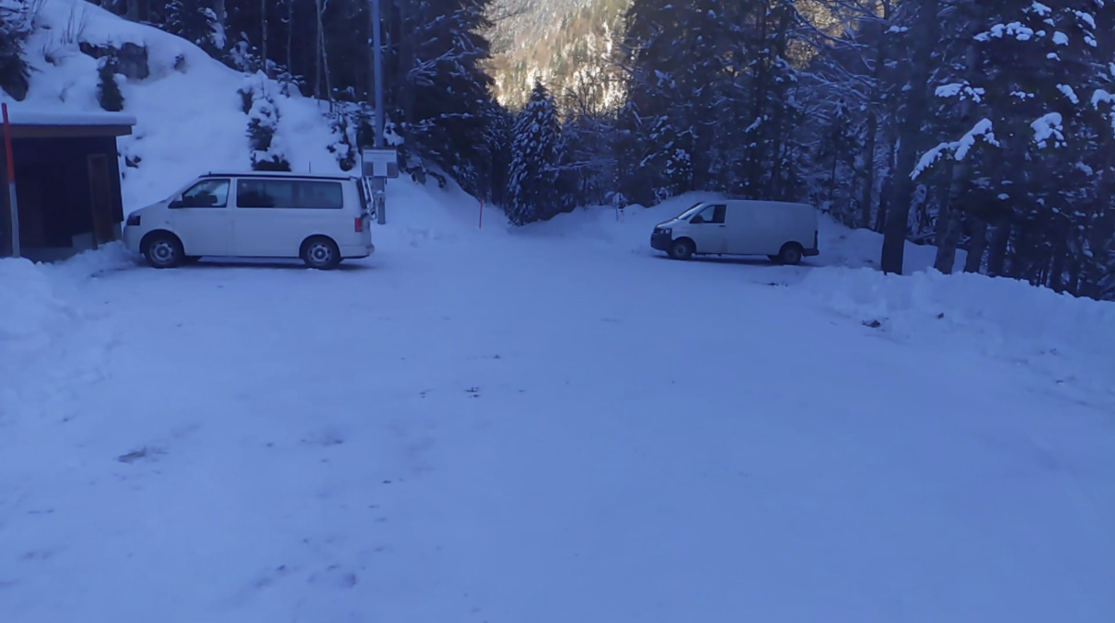 Wir sind bei frostigen -20 Grad am Ende des Golfplatzes angekommen. Wir haben vor dem Schwyzerblätz(47.05306, 8.85755) parkiert. Wir konnten die Skier vom Parkplatz weg anziehen und der Strasse entlang hoch. Weiter oben hat es eine weitere Parkmöglichkeit beim Punkt 1067 (47.03934, 8.85770) für ca. 10 Autos (ca. 2km und 100hm weniger Training).
