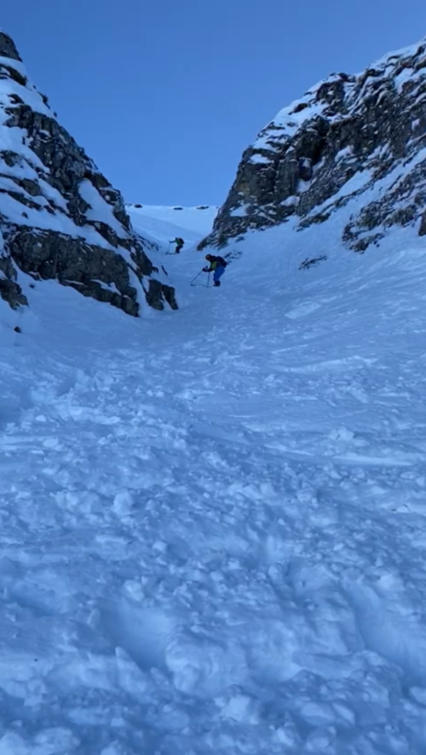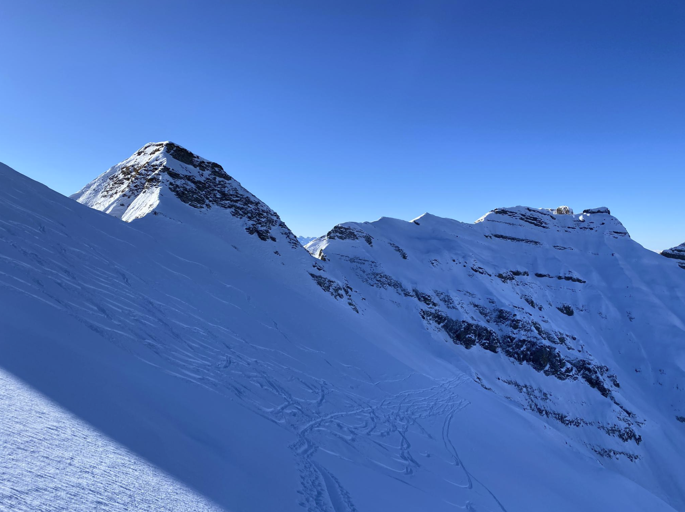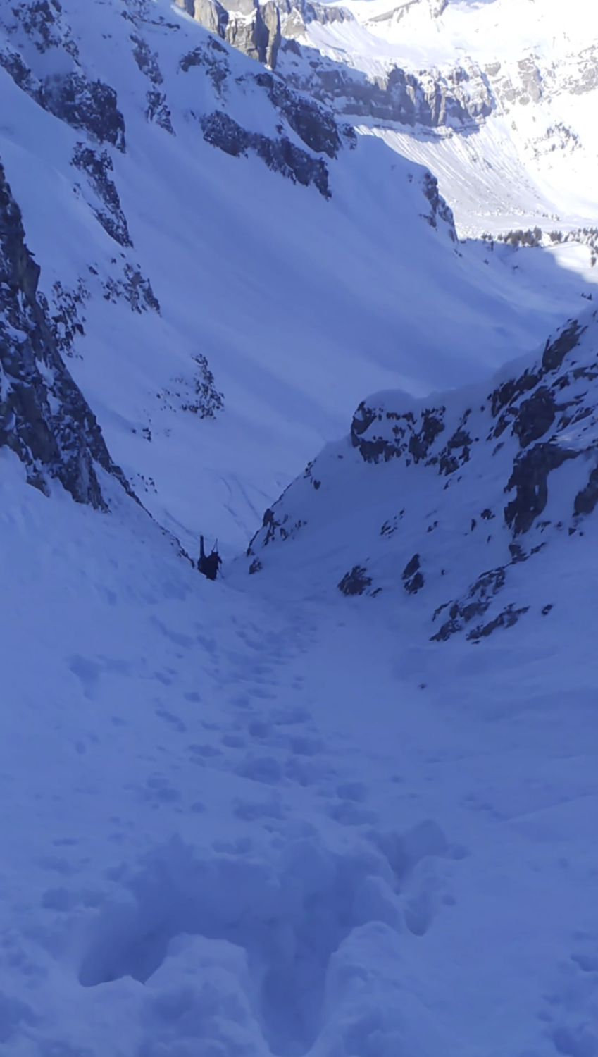 Die Austiegsspur führte durch unter/ober Mutterort und ist gut angelegt. Der Aufstieg durch das Colouir ist mit aufgebundenen Skier in gutem Trittschnee ohne Probleme machbar. Auf der Abfahrt konnten wir das Colouir mit den Skiern abrutschen. abgefahren sind wir durch das Chräloch in meist schönem gesetztem Pulver.
