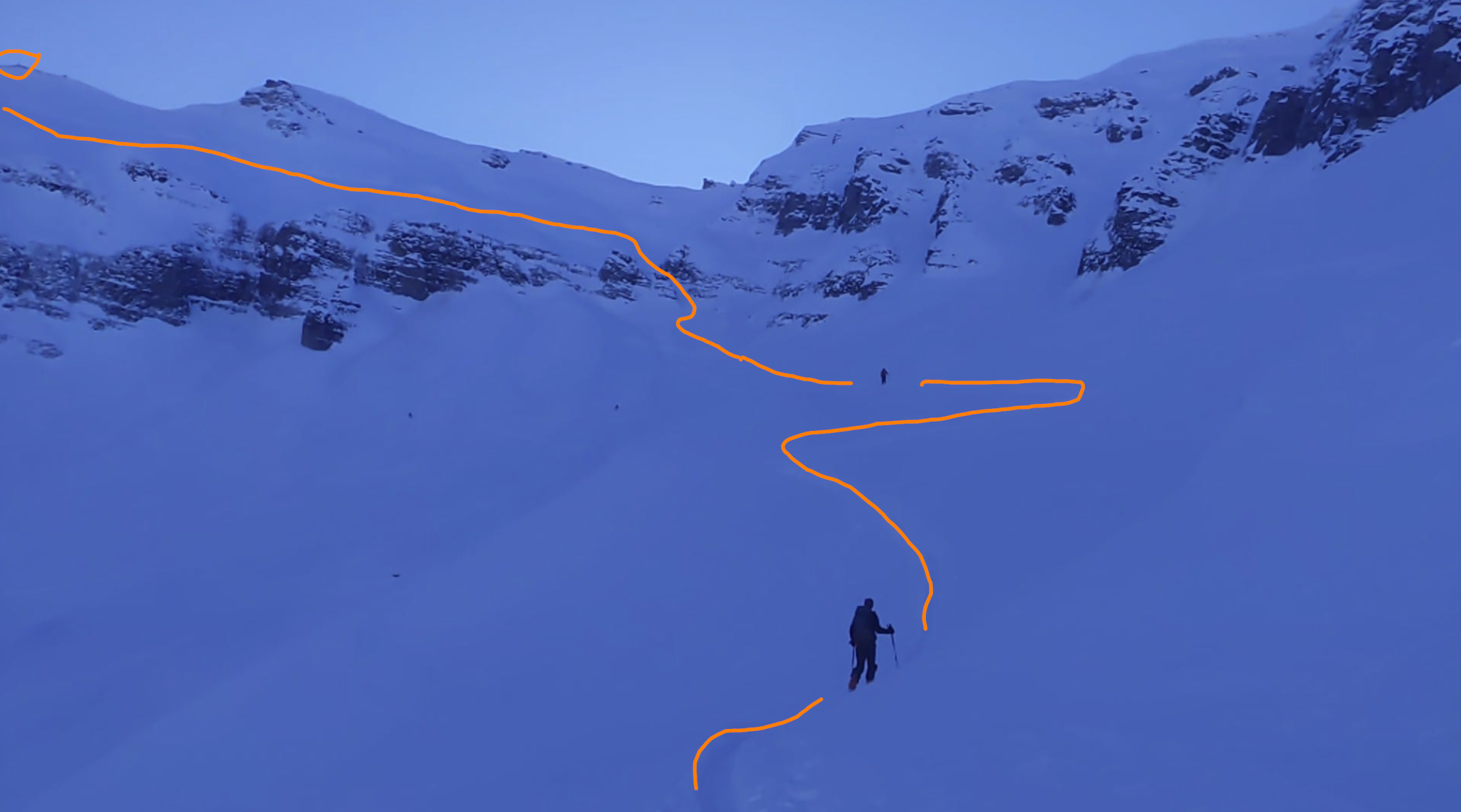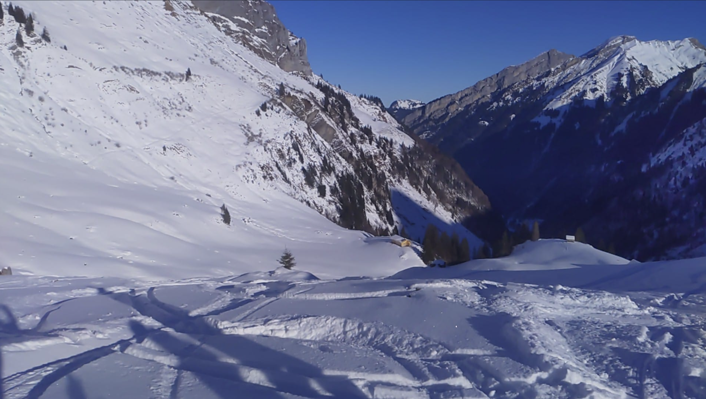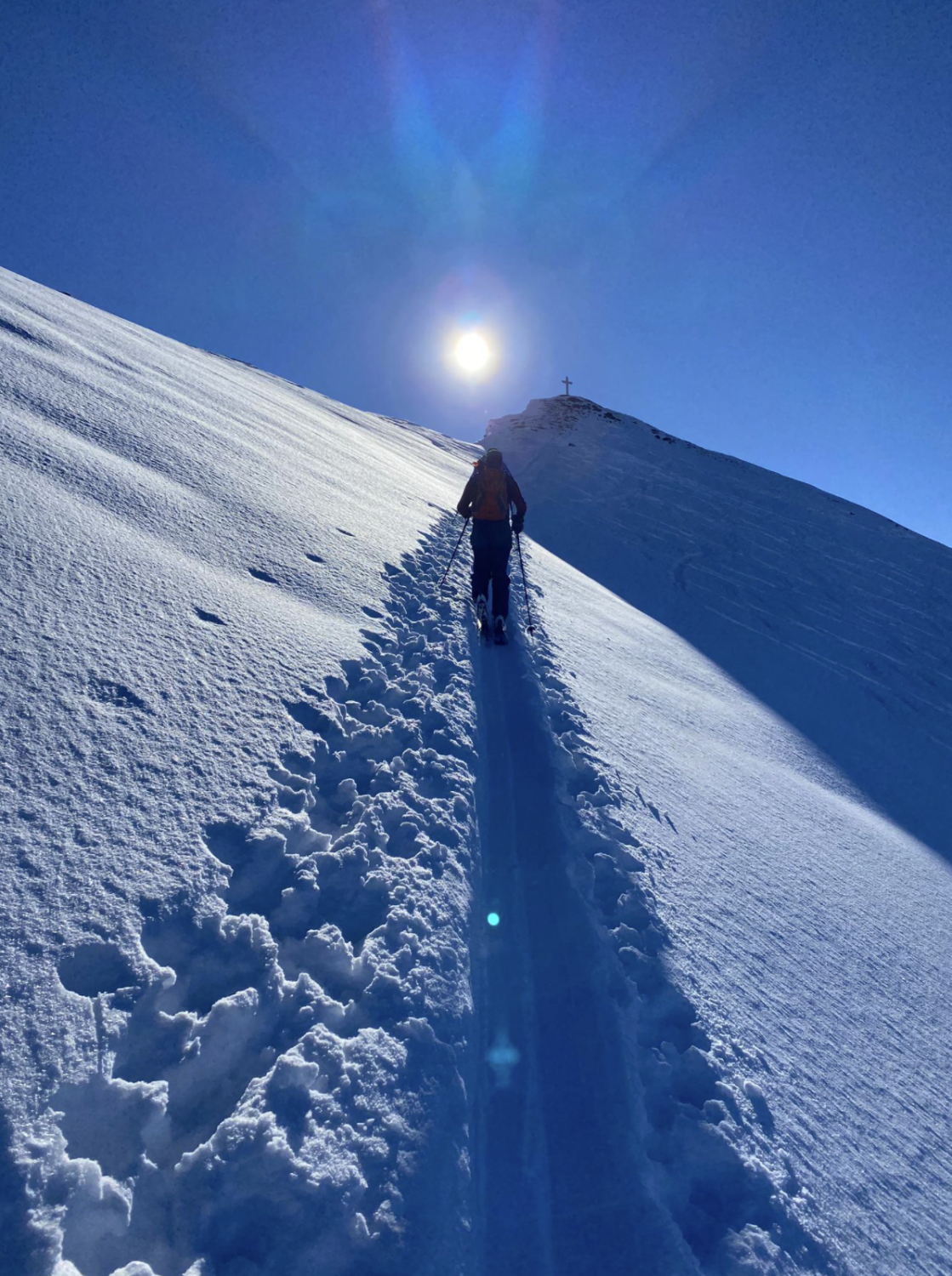 Die Austiegsspur führte durch unter/ober Mutterort und ist gut angelegt. Der Aufstieg durch das Colouir ist mit aufgebundenen Skier in gutem Trittschnee ohne Probleme machbar. Auf der Abfahrt konnten wir das Colouir mit den Skiern abrutschen. abgefahren sind wir durch das Chräloch in meist schönem gesetztem Pulver.