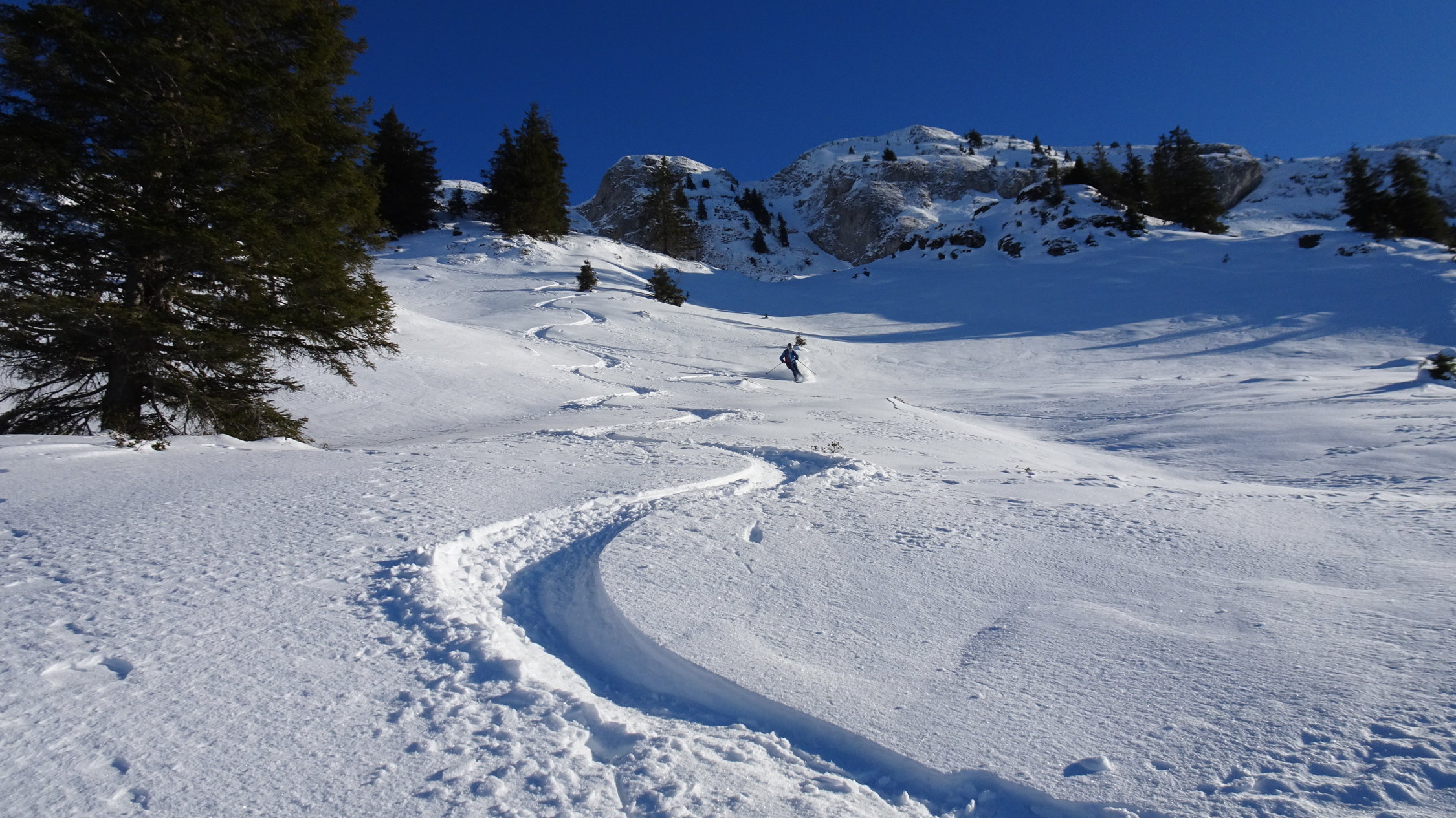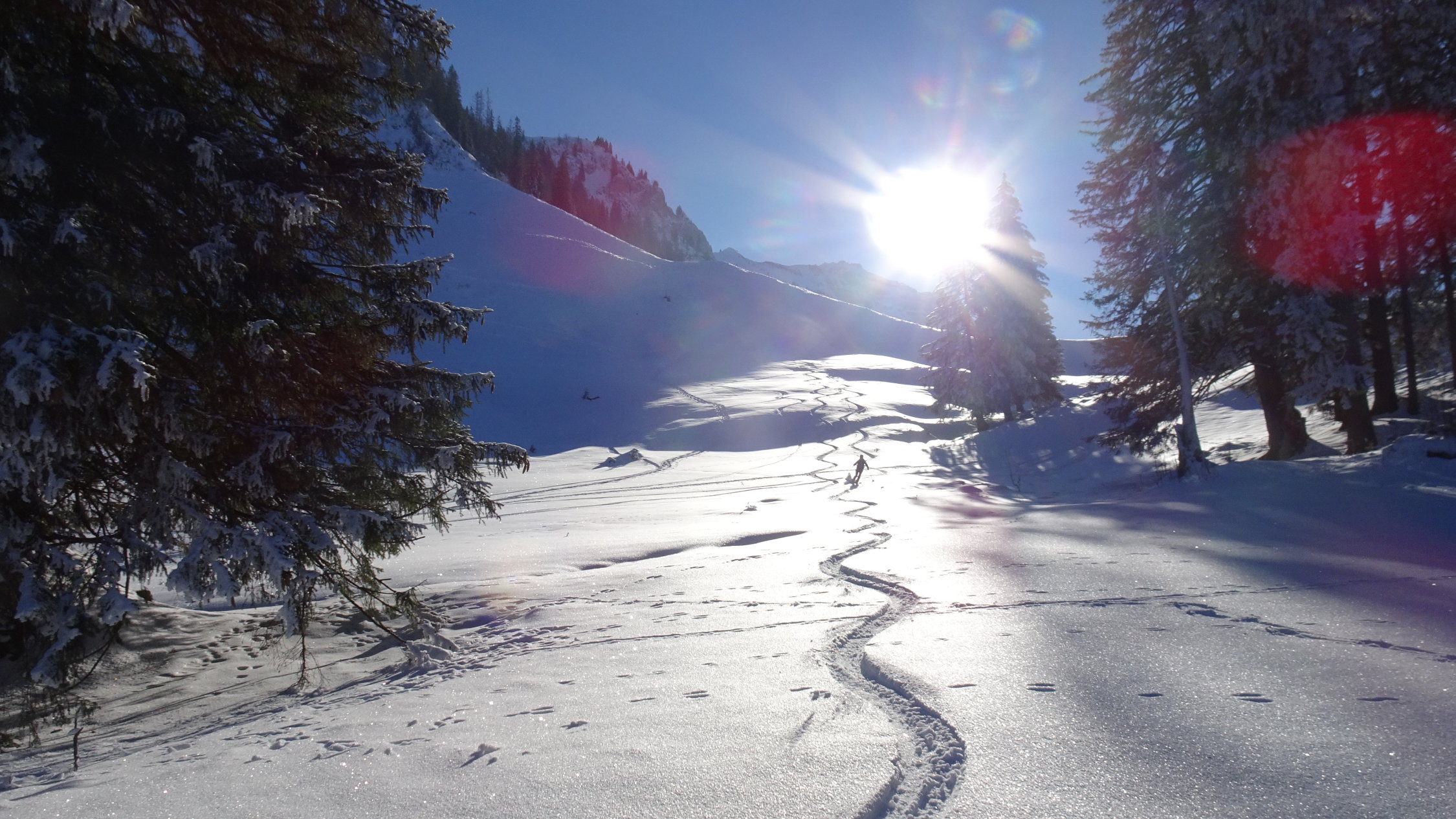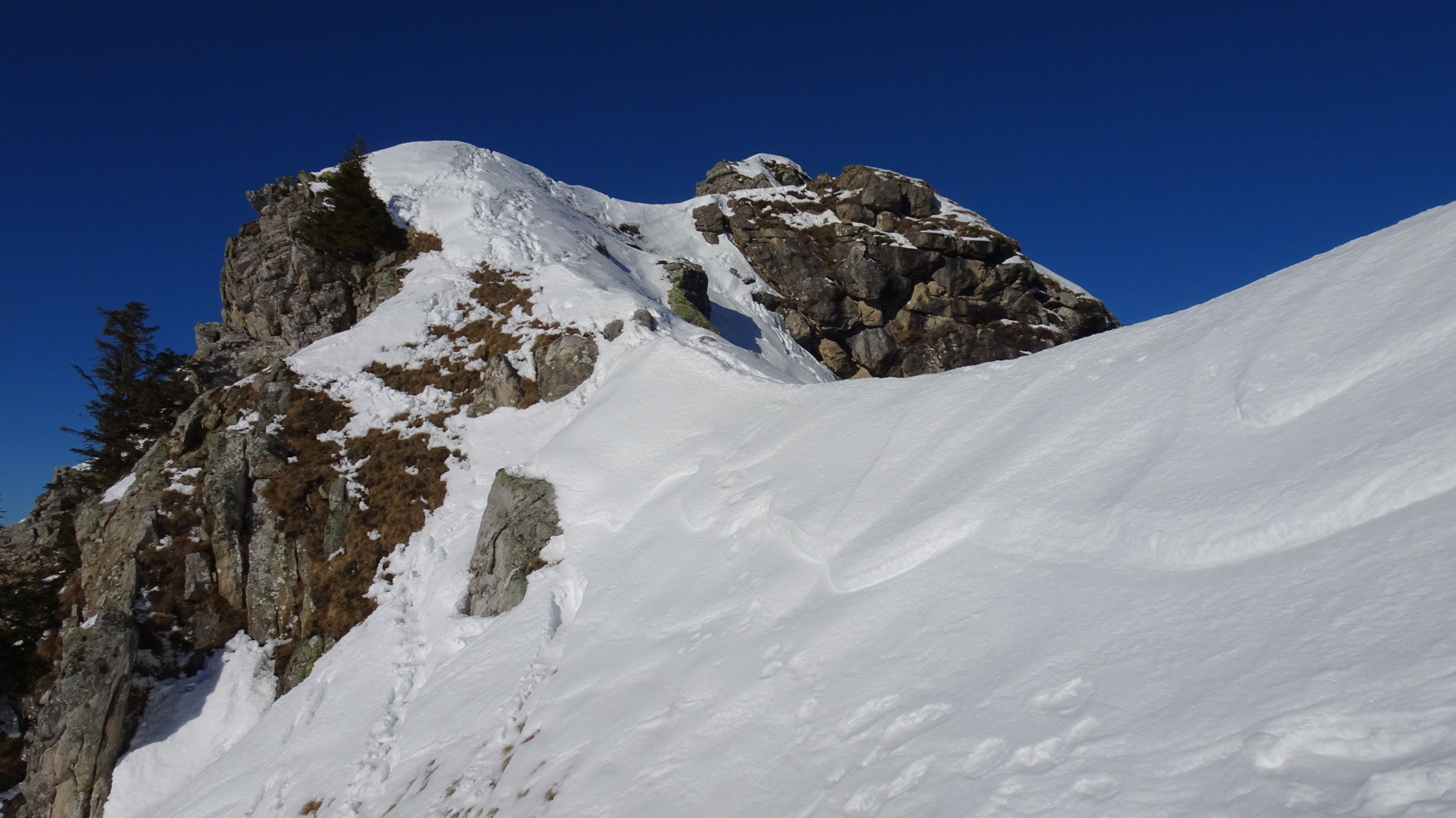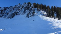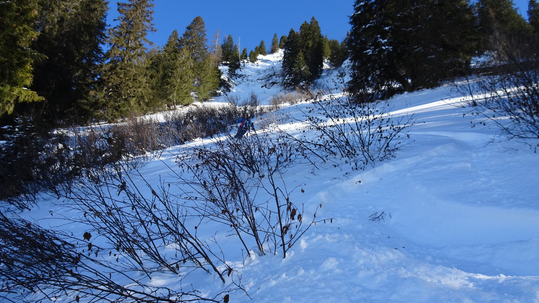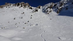 Einsame aber schwierige tour.In der Steilstufe knapp Schnee ohne Unterlage, darüber überraschend gut aber auch wenig Schnee