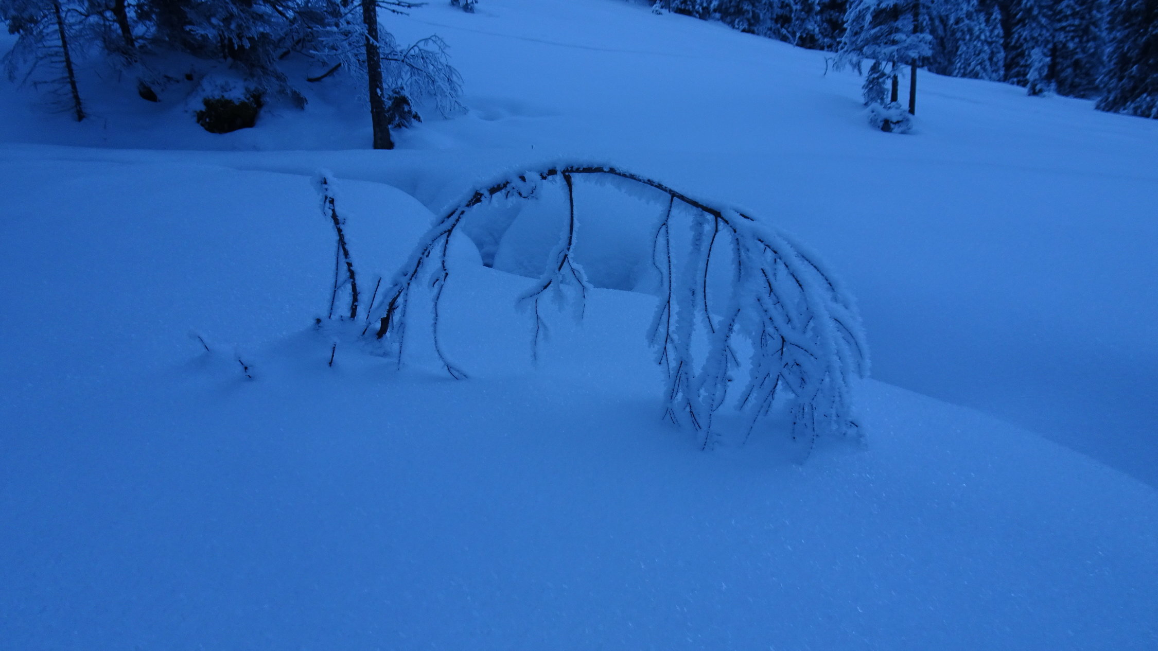 Beim Start -09° dazwischen in den Mulden bis -14° Retour Zulgbrücke immer noch -8°