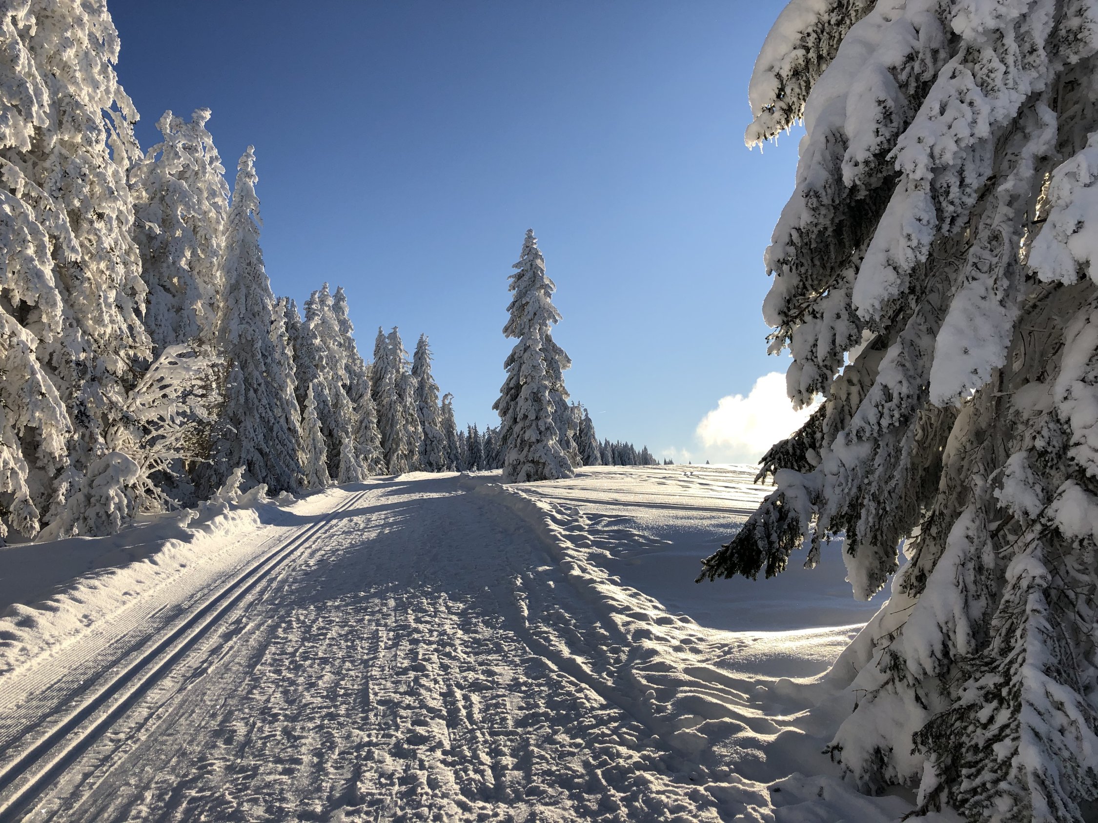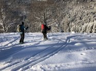 Von St. Wilhelm über Katzensteig Vom Parkplatz in St. Wilhelm rechts die Schneise hoch, im oberen extrem steilen Teil vorteilhaft nach rechts weg dem Wanderweg folgen bis zum Berggasthaus Stübenwasen. Von dort entlang dem Winterwanderweg auf den Stübenwasen, abfellen und Richtung Feldberg abfahren. Nach ca. 500 m rechts ab und gleich darauf wieder rechts, nach weiterem 200 m geht es links ab Richtung Brandenberg, zuerst dem Forstweg folgen und später über schöne und steile Südhänge.
