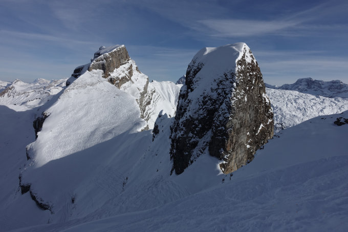 Schöner Pulver von unten bis oben, aber stark verfahren und teilweise nicht besonders dicke Auflage, so dass man den einen oder anderen Stein in Kauf nehmen musste. Aufstiegsspur im Gipfelbereich ausgetreten und in den steilen Passagen mühsam zu gehen.