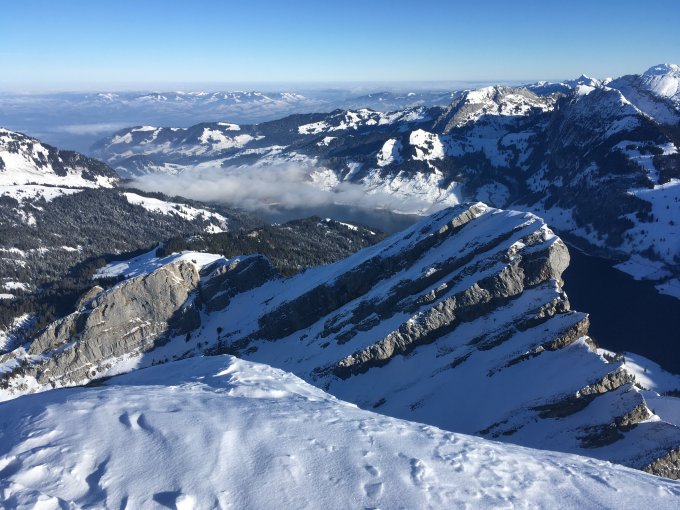 Pulverig auf der ganzen Tour. Harsteisen von Vorteil. Die Ketten am Gipfelgrat sind frei. Bei der Abfahrt immer noch "freier" Pulver. Kurz vor dem Parkplatz, auf der Forststrasse, beim Tor bin ich zu Fuss bis zum Parkplatz. War eine gute Entscheidung.