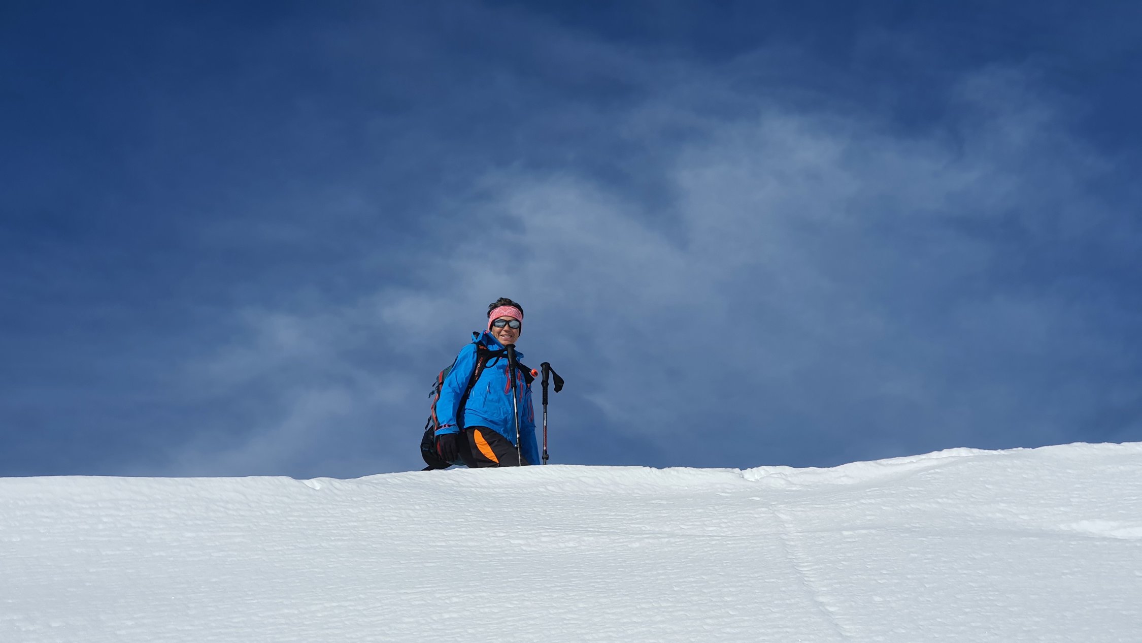 Die letzten Meter zum Gipfel in gutem Trittschnee zu Fuss.