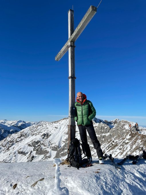 Bei minus 15 Grad um acht Uhr gestartet - auf dem Panoramaweg zur Bärgunthütte, über die zwei Steilstufen hoch, mit kurzen Tragepassagen, dann westlich zum Grat und auf diesem zum Gipfel - den Temperaturen entsprechend harter bzw. Pulverschnee, unten knapp, oben gut. Die schönen Nordhänge unter dem Gipfel sind stark zerfahren, machen aber immer noch Freude.
