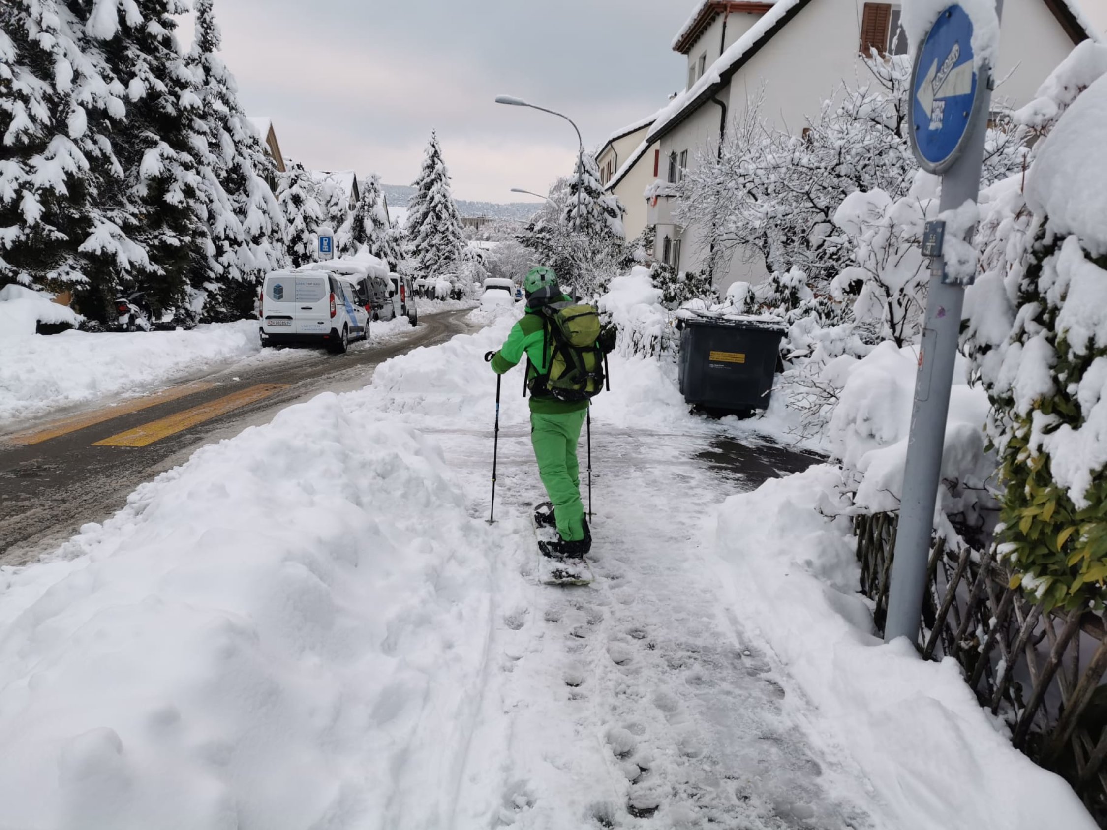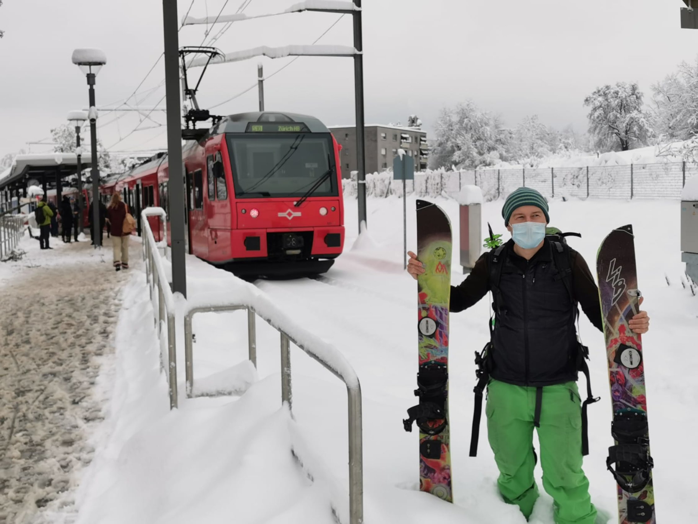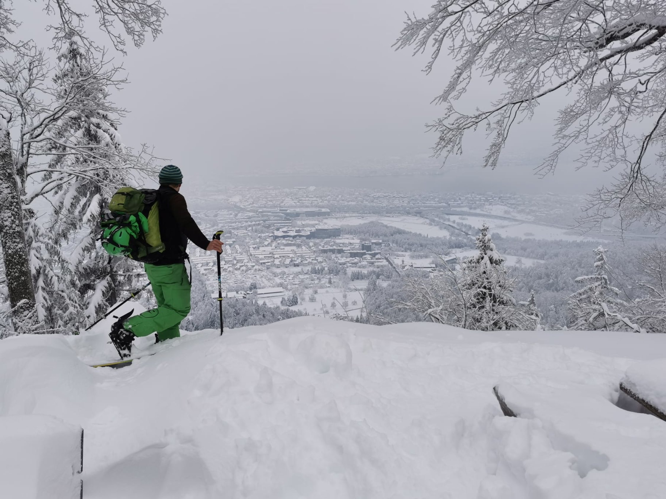Start bei Haltestation Triemli, durchgehend auf Wanderwegen gute Spur bis zum Glühweinstand oben unterm Turm- Noch Offen. Abfahrt durch den Wald diretissima durch Couloirs und Bäche. Es hat ca. 70 cm Schnee oben im Wald, zum Absaufen, wenig Stein dafür Strauchkontakt - man muss es wirklich laufen lassen für Schwünge. Abfahrt bis Grubenstrasse möglich - Zum Supermarkt - Verkehrsregeln beachten =) Ca. 100m Skitragen bis Station Zürich Binz. Wenns es mal friert und Neuschnee kommt wirds perfekt.
