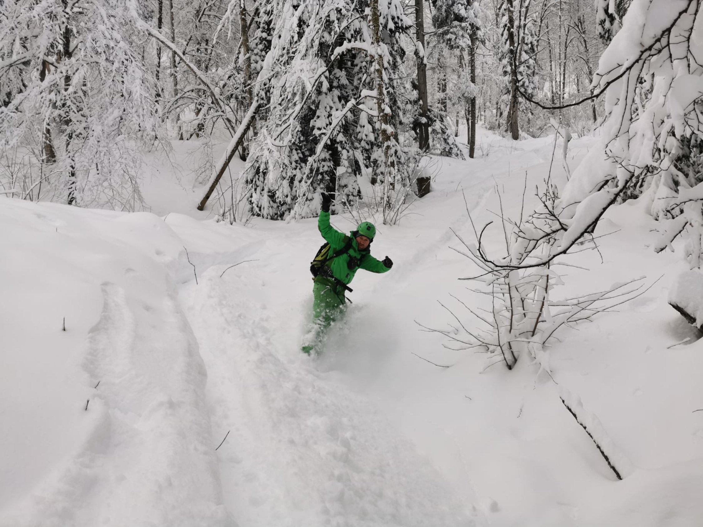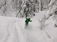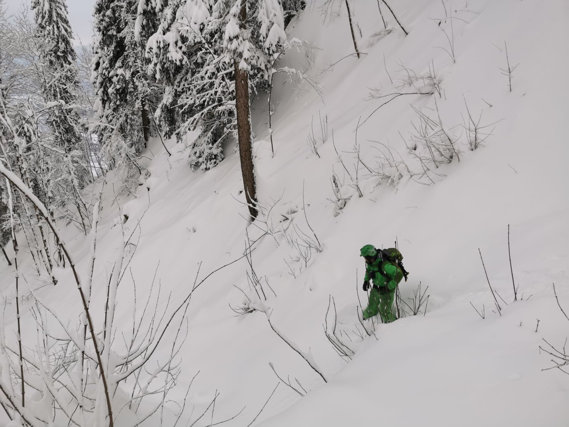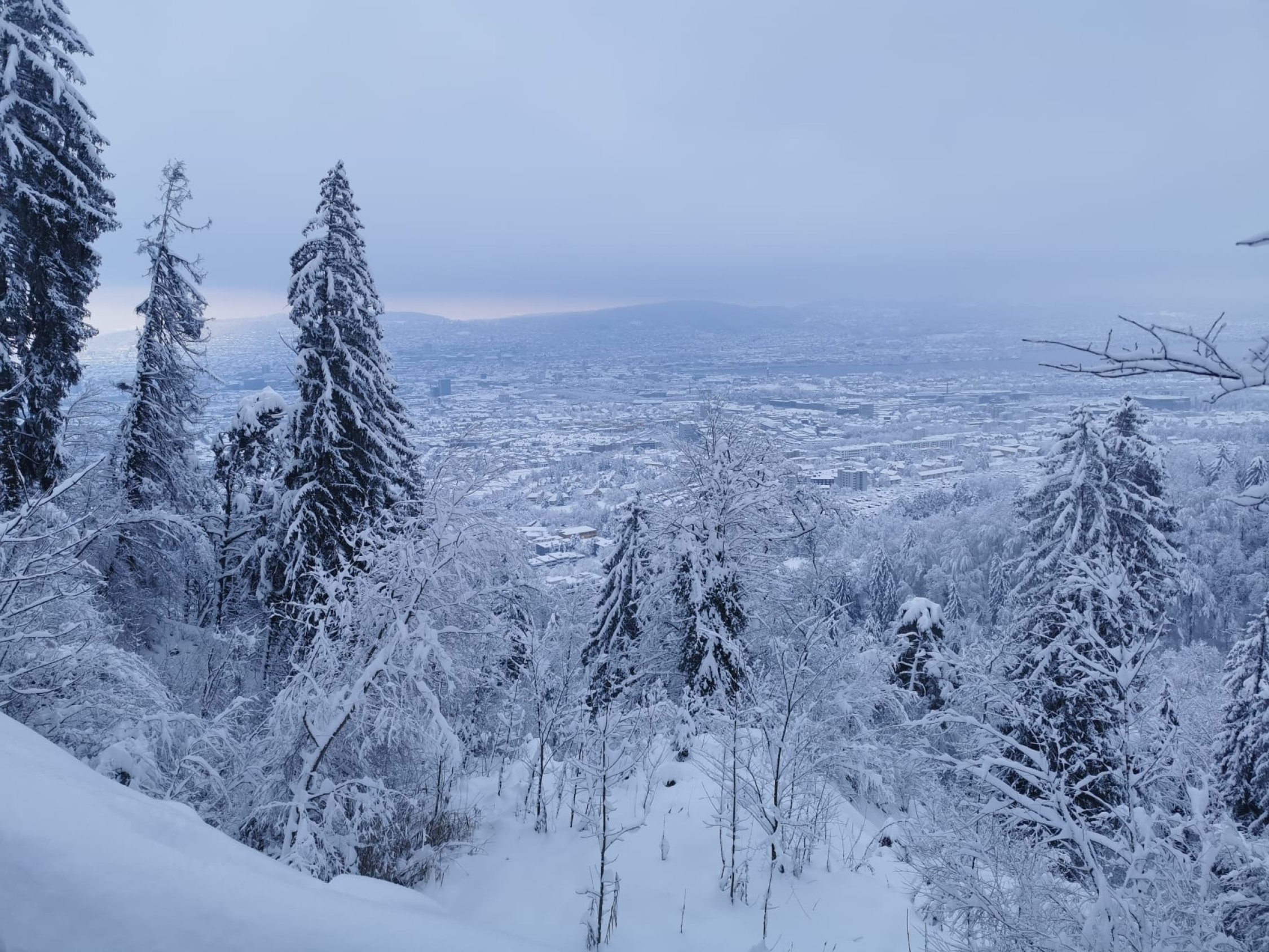 Start bei Haltestation Triemli, durchgehend auf Wanderwegen gute Spur bis zum Glühweinstand oben unterm Turm- Noch Offen. Abfahrt durch den Wald diretissima durch Couloirs und Bäche. Es hat ca. 70 cm Schnee oben im Wald, zum Absaufen, wenig Stein dafür Strauchkontakt - man muss es wirklich laufen lassen für Schwünge. Abfahrt bis Grubenstrasse möglich - Zum Supermarkt - Verkehrsregeln beachten =) Ca. 100m Skitragen bis Station Zürich Binz. Wenns es mal friert und Neuschnee kommt wirds perfekt.