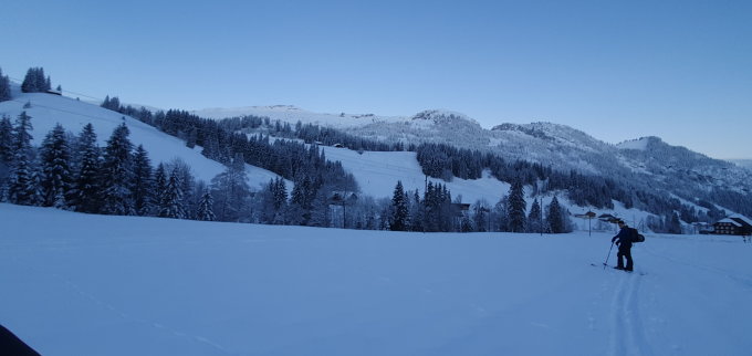 Das Lawinenbulletin war heute noch im "Gross" Modus. Es gibt sicher mehrere Stellen am Berg bei denen das zutrifft. Die klare Nacht hat zu mehr Sicherheit verholfen. Die Abfahrt westlich vom Gipfel haben wir heute bewusst nicht gemacht. Die Wetterprognose für heute war 100% korrekt. Oberhalb des Waldes mässer West/Nordwestwind war schon spürbar. Dafür schön Sonnig ! Herrliches Resumé. Parkgebühr Parkplatz Hirsegg, neu auf CHF 5.00 erhöht. Wir sind froh, dass wir dort eine Parkmöglichkeit haben. Dank dem Besitzer.