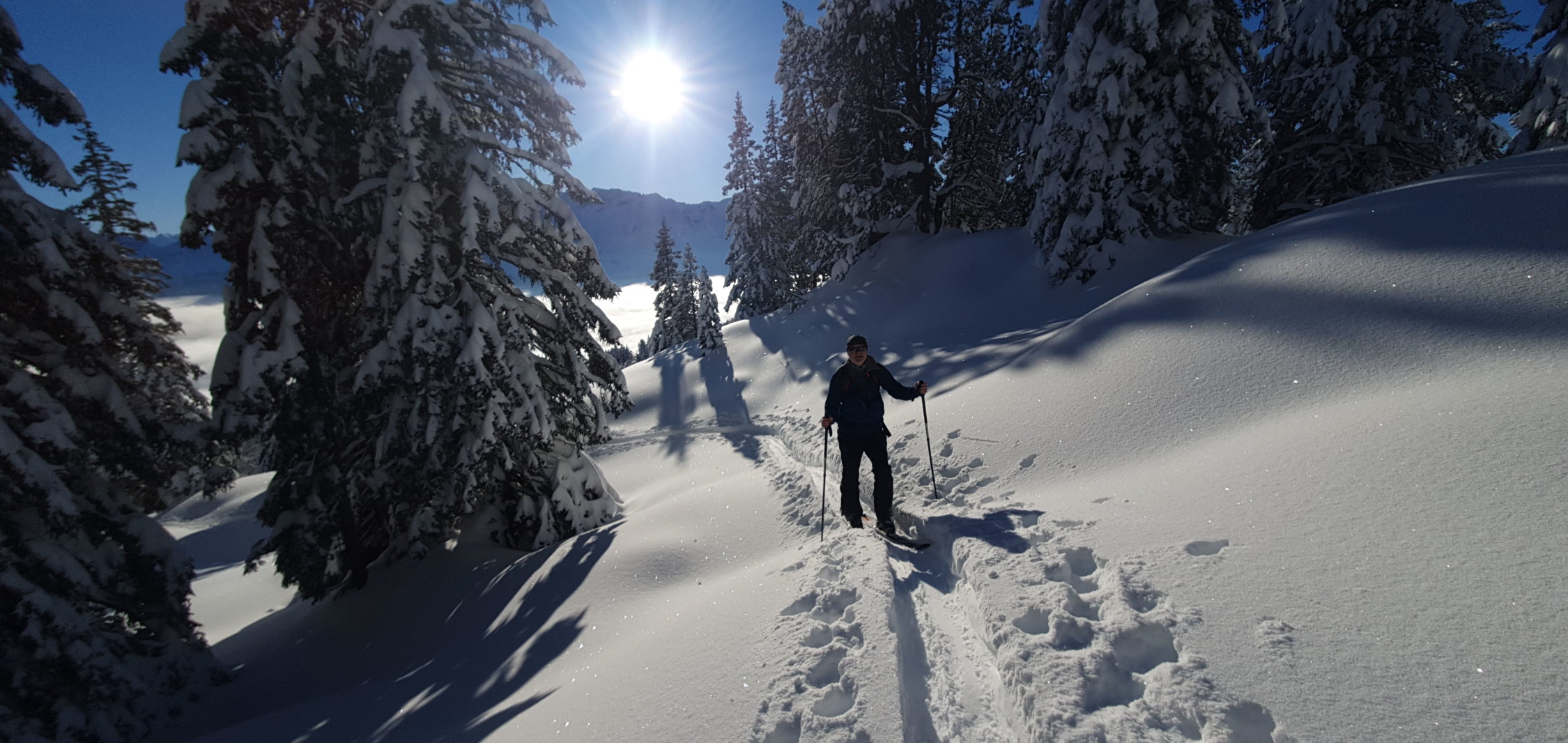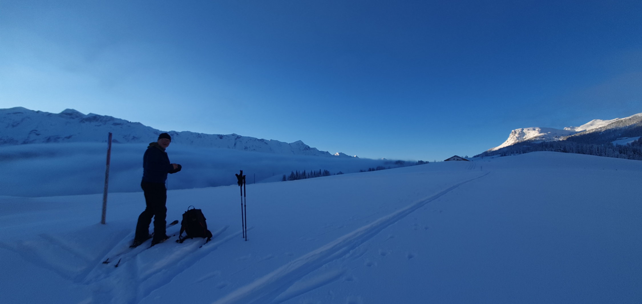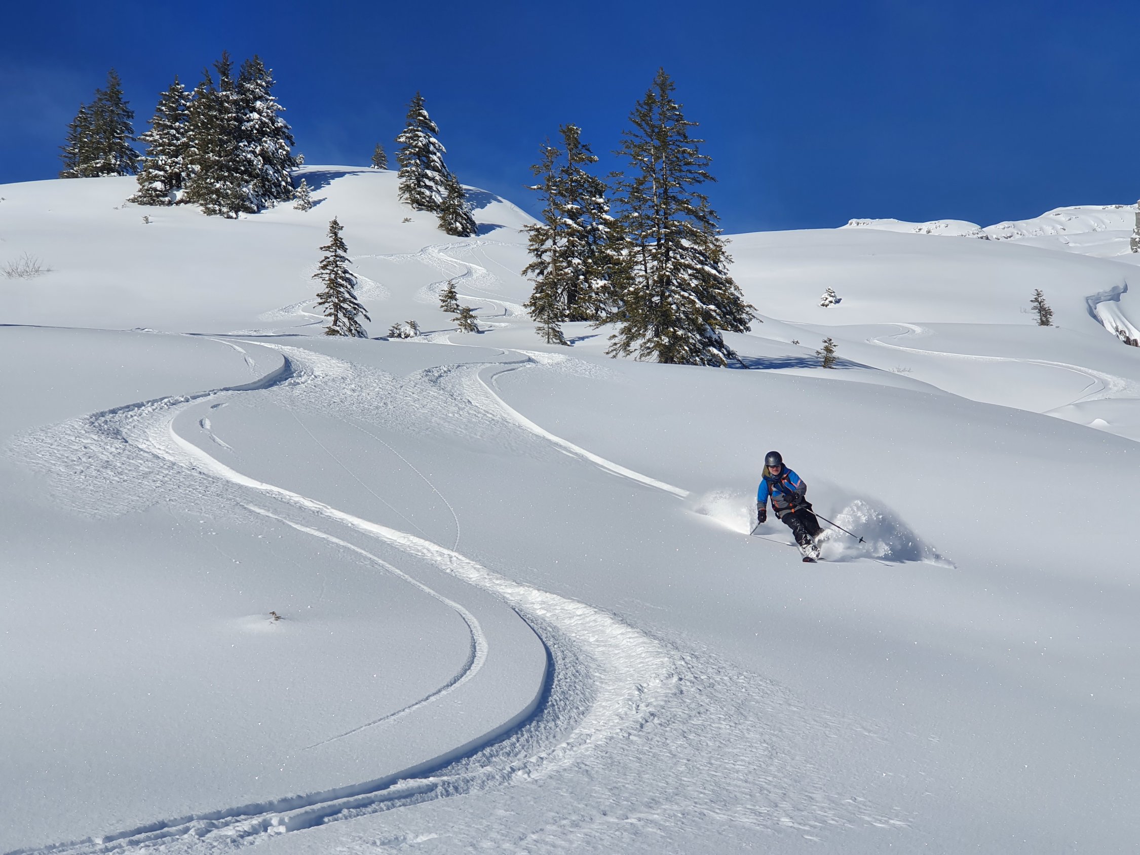Ein super Tag hat sich schon am Morgen abgezeichnet. Zwar sehr kalt im Bereich von -9°C bei Start. Ganzer Aufstieg Spur im Pulverschnee. Gute Spur gelegt, durch den Wald und im oberen Teil etwas ungewohnt - oben weit Richtung West und im Gipfelhang direkt hoch. Beste Verhältnisse angetroffen. Heute sogar mit Skis bis auf den Gipfel.Die Schrattenfluh ist wieder gut eingeschneit. Abfahrt heute Route über Silwängen gewählt, alles Top erwischt. Oberhalb des Waldes hat es teilweise abgeblasene Stellen, bei denen Steinkontakt noch möglich ist. Sonst kein Problem damit.