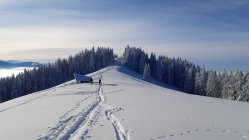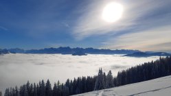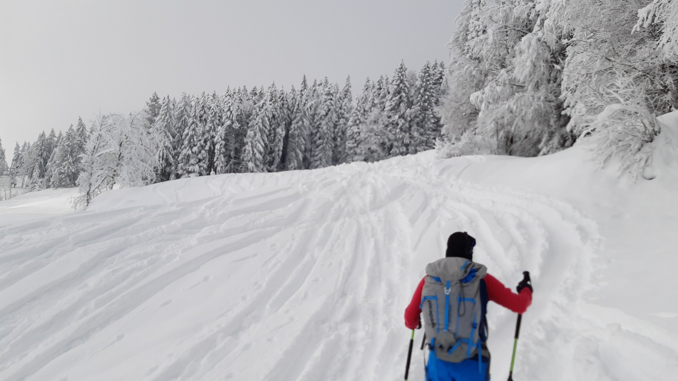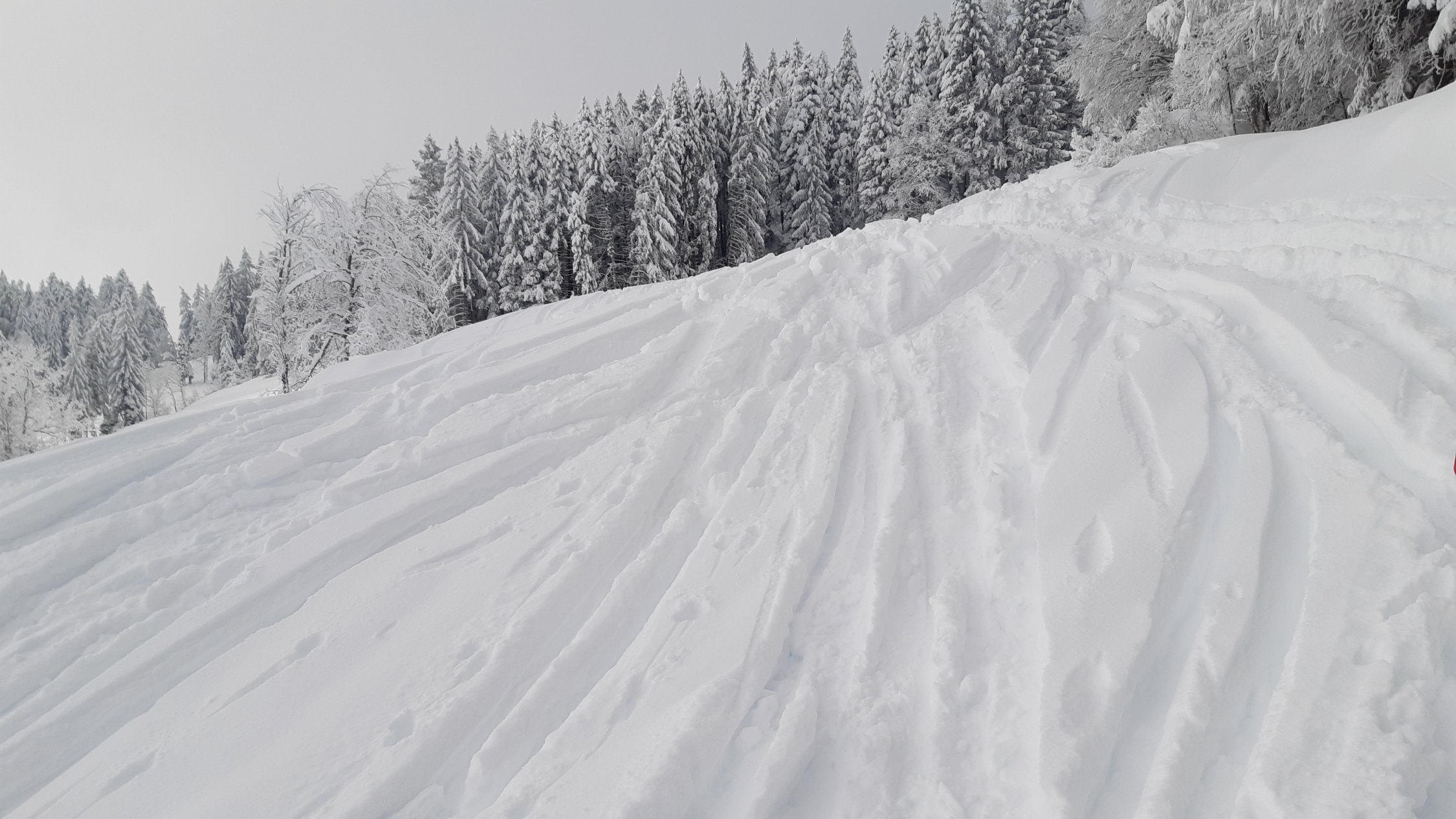 Gestartet um 13 Uhr, bei Sonnenschein. Ein Traum im Aufstieg auf guter Spur. Erst Sonne, dann Nebel und kurz unter Langmatt dann wieder Sonne. Die Hänge sind mit tiefen Spuren schon sehr zerfahren und in den flacheren Stellen ist die Aufstiegsspur oder andere Abfahrtsspuren willkommen. Im unteren Drittel war der Schnee dann schwer und schon mit ganz leichtem Deckel. Man braucht keine grosse Phantasie um zu wissen was eine kalte Nacht mit dem Schnee macht :-)