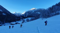 Bestehende Aufstiegsspuren etwas 'hackig' angelegt aber griffig zu gehen. Beim neu spuren immer mal wieder ein Wumm-Geräusch, ebenfalls in der Abfahrt.