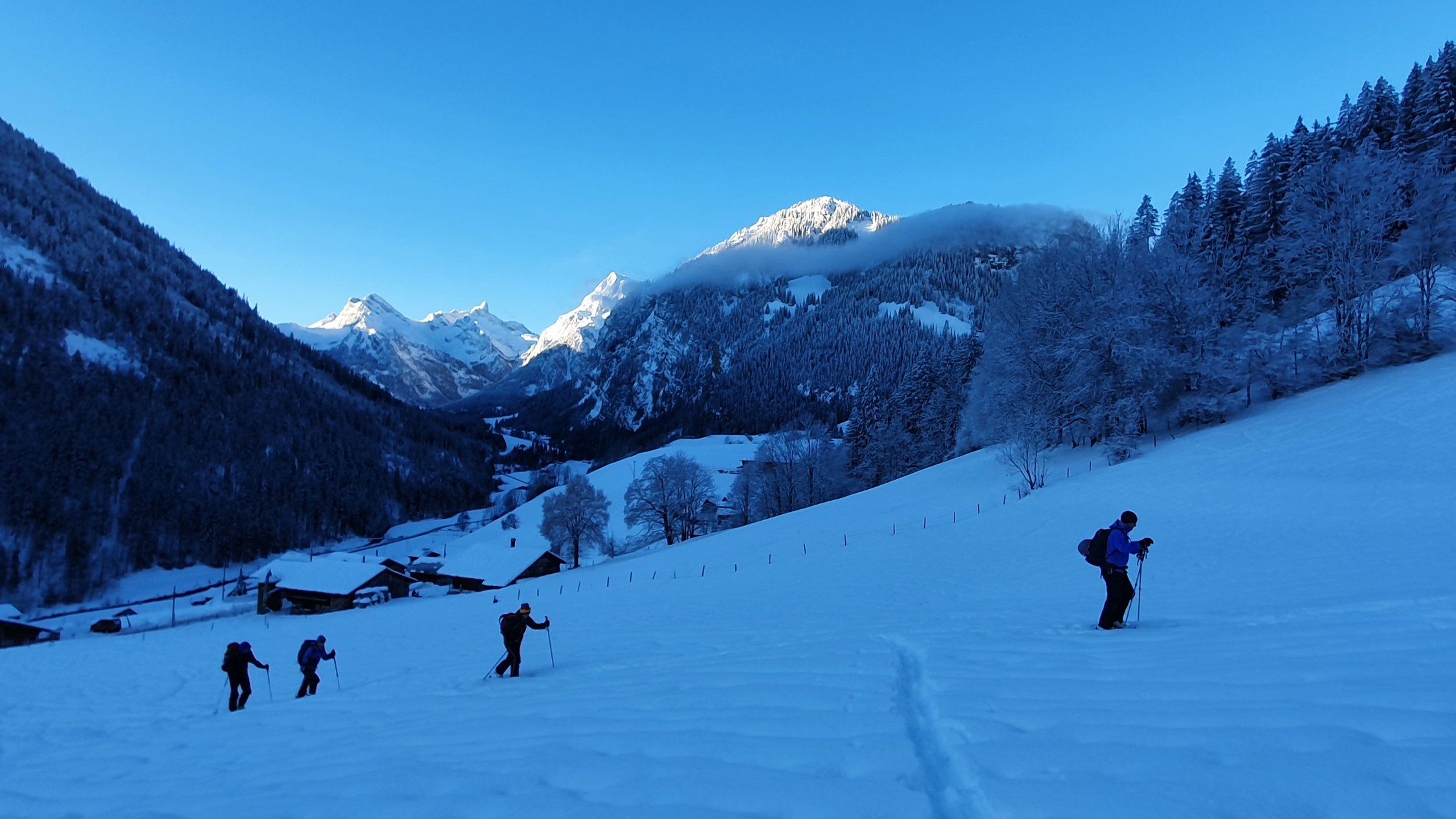 Viele Gipfelbesucher sind anscheinend via Hindertärfete runter. Wir sind jedoch wieder durch den Wald via Vordertärfete abgefahren, ausreichend Schnee, genug freier Platz und sehr schön zu fahren. Erst das letzte Stück zum Reservoir und retour nach Zwischenflüh war Pflicht und keine Kür mehr.