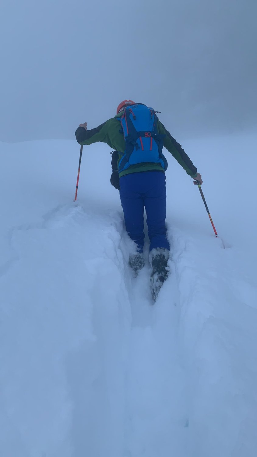 Wir sind am Freitag Abend bis nach Bittiein hinau, da diese Tour von unten bei diesen Schneeverhältnissen kaum zu machen wäre. Gestern waren die 1000 Hm schon " harta Tubak " gsi.