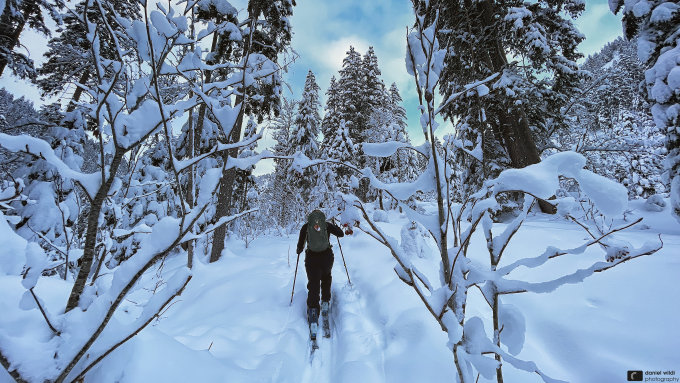 Aufgrund des Lawinenbulletins sind wir nur bis auf den "Vorgipfel" (Punkt 2085) und auch nicht durchs Chelli sondern auf der Aufstiegsroute wieder abgefahren. War der Hammer!