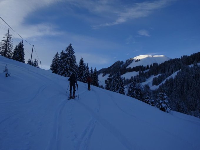 Ochsen: Es war schon eine Aufstiegsspur von gestern drin, wussten wir vom gestrigen Eintrag. Es waren aber morgens nur wenige Leute unterwegs da hoch.