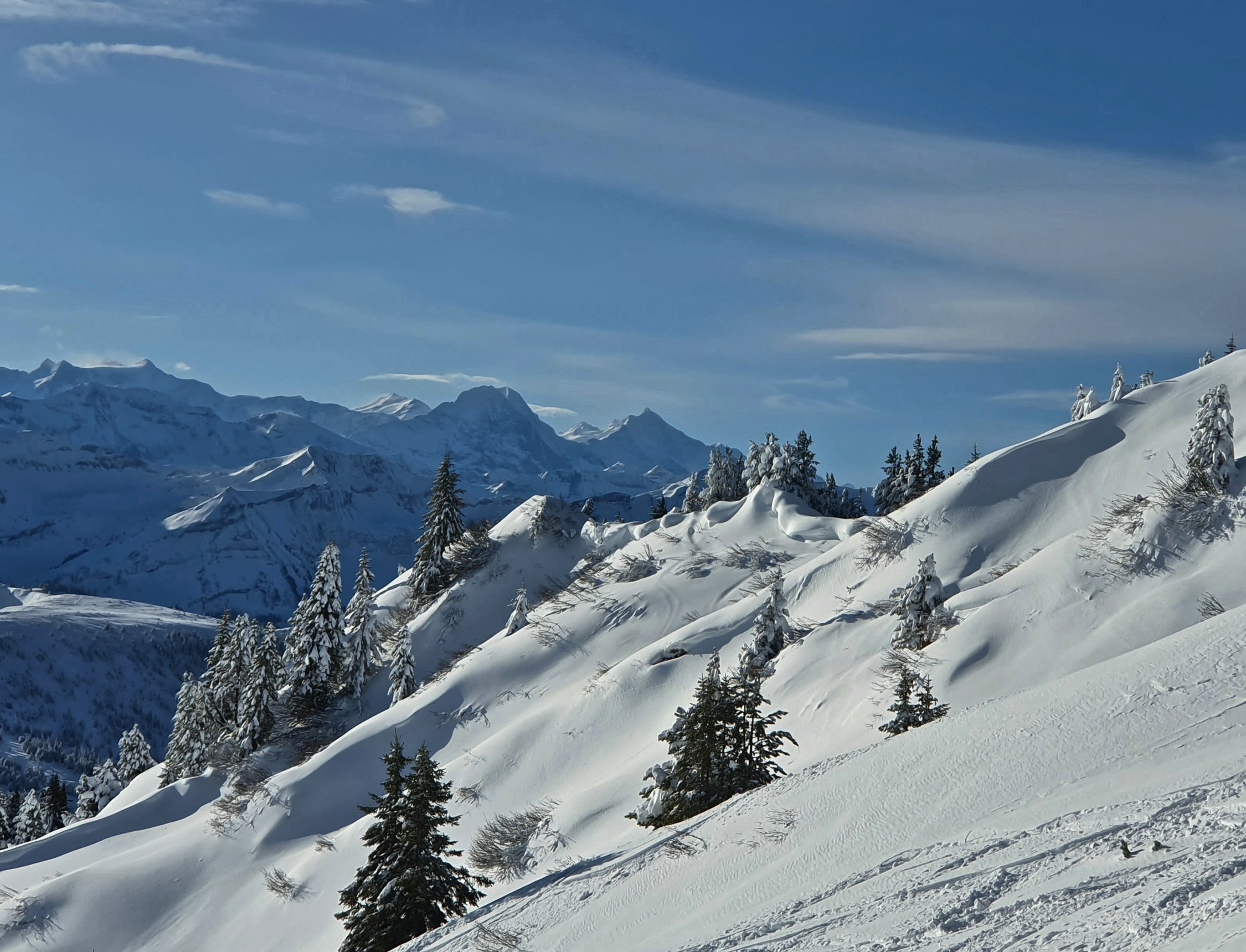 Trotz des starken Südwestwindes auf den Gipfeln und Graten, fantastisch heute. Genügend Schnee, ja sogar mehr als erwartet und von A bis Z Powder.