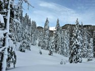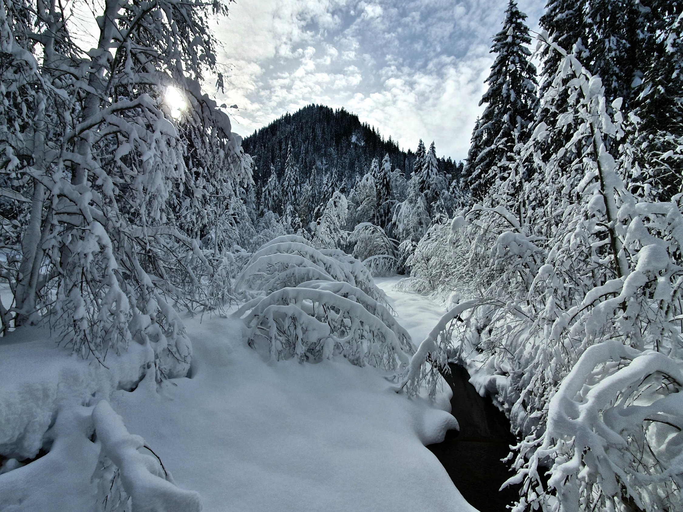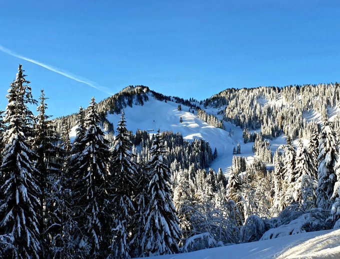 Traumhafte Verhältnisse mit viel, viel Powder. Die Route liegt im Hochwinter fast ganztags im Schatten (Nordhänge). Deshalb findet man dort oftmals noch lange Powder.
