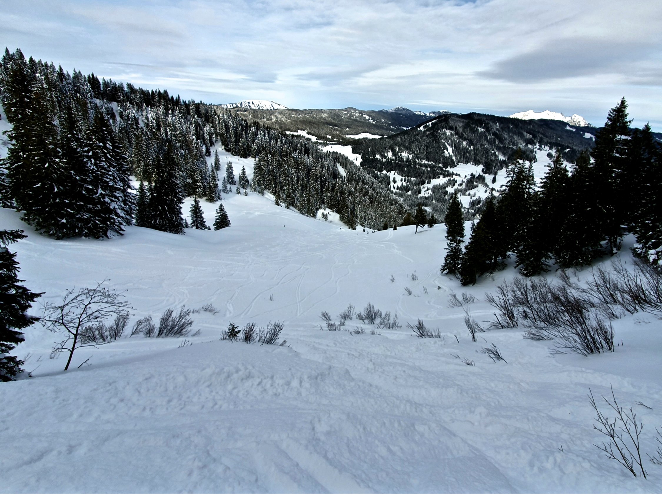 Obwohl doch schon etwas zerfahren, findet man noch unverspurtes Gelände.