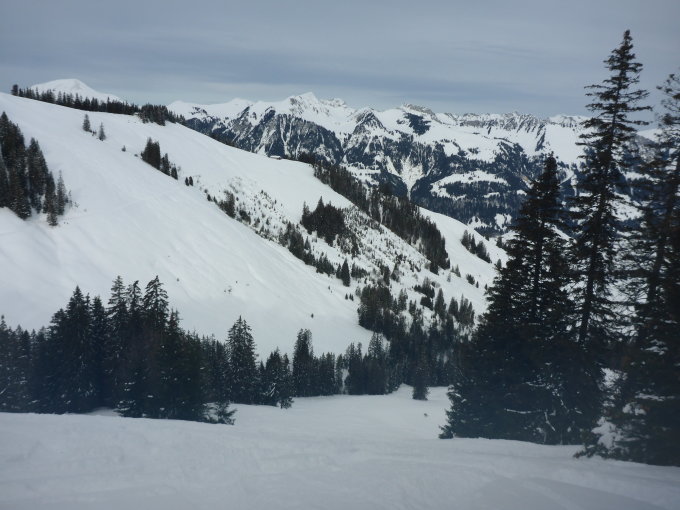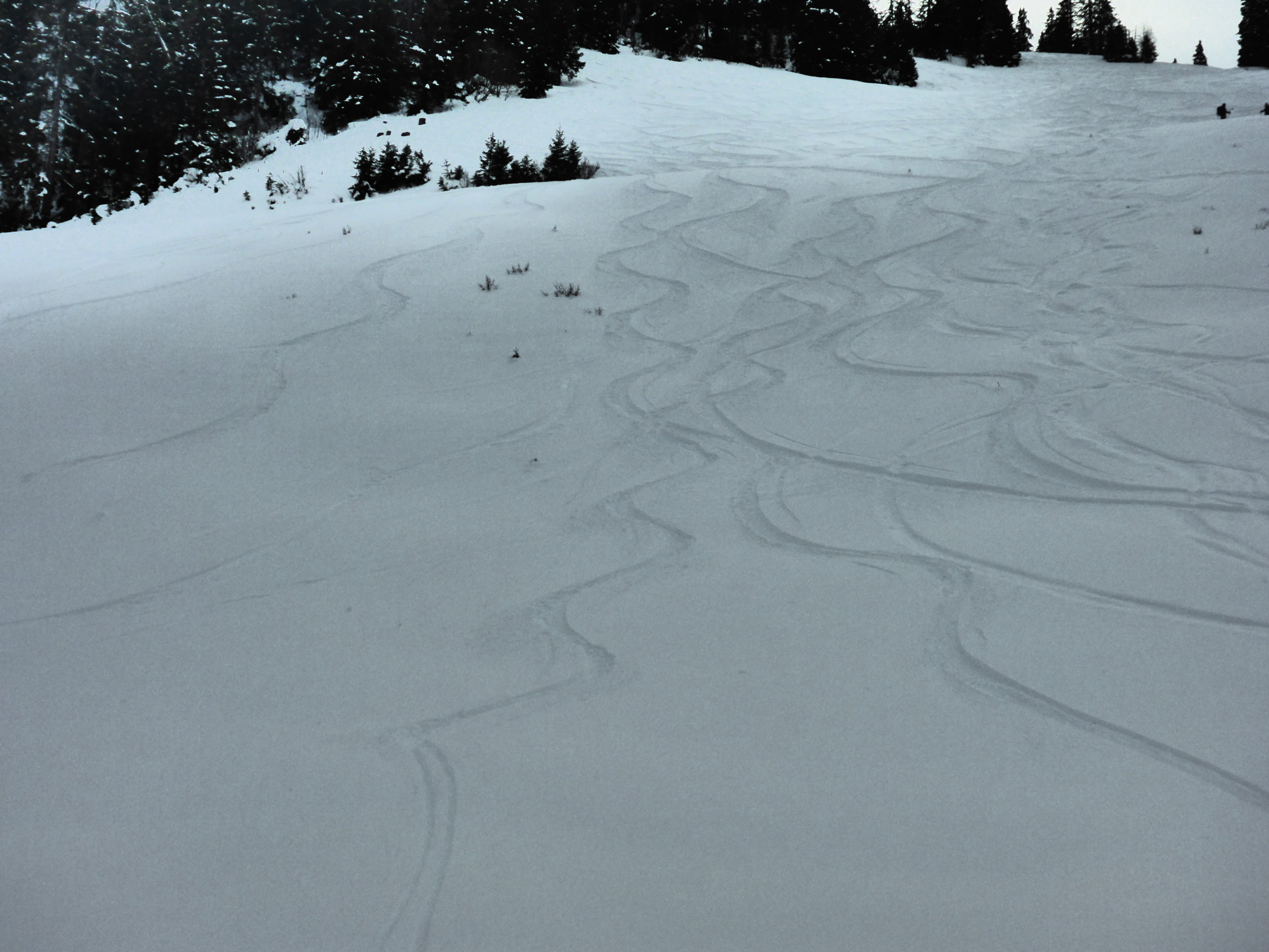 Bei Abfahrt etwas alternativ zum Mainstream lassen sich sogar noch unverspurte Bereiche finden.