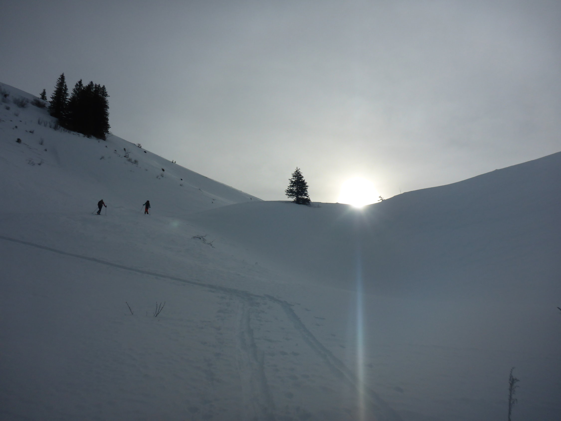Schneemenge reicht momentan auch für Aufstieg ab Oberwil, allerdings lagen die Temperaturen unterhalb Rossberg im Plus-Bereich