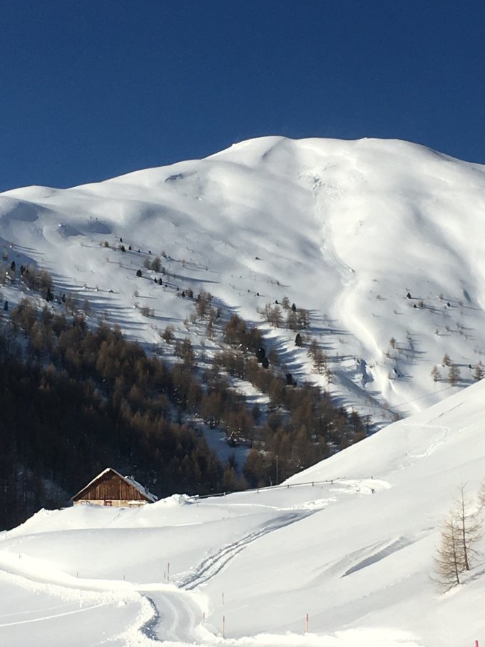 Start Madulain Parkplatz Bahnhof RhB, 8.45, minus 17 Grad, windstill. Schöne Spur vorhanden bis Rücken vor Chamanna d‘Es-cha. Jetzt kurze Traverse zum flachen Gipfel mit schöner Aussicht. Auf Gipfel minus 2 Grad und windstill. Top Abfahrt in perfektem Pulverschnee bis oberhalb Alp Es-cha Dadour und dann Traverse zu Punkt 2043 und im lichten Wald Richtung Spinas und Madulain Spih 1702. Die Terrassen oberhalb Madulain sind ein Genuss, Von Gipfel bis Madulain perfekter Pulverschnee. War alleine am Berg. Es-cha Hütte bis 12. Februar geschlossen, Der schöne Winterraum und die Schlafmöglichkeit sind leider auch geschlossen!!