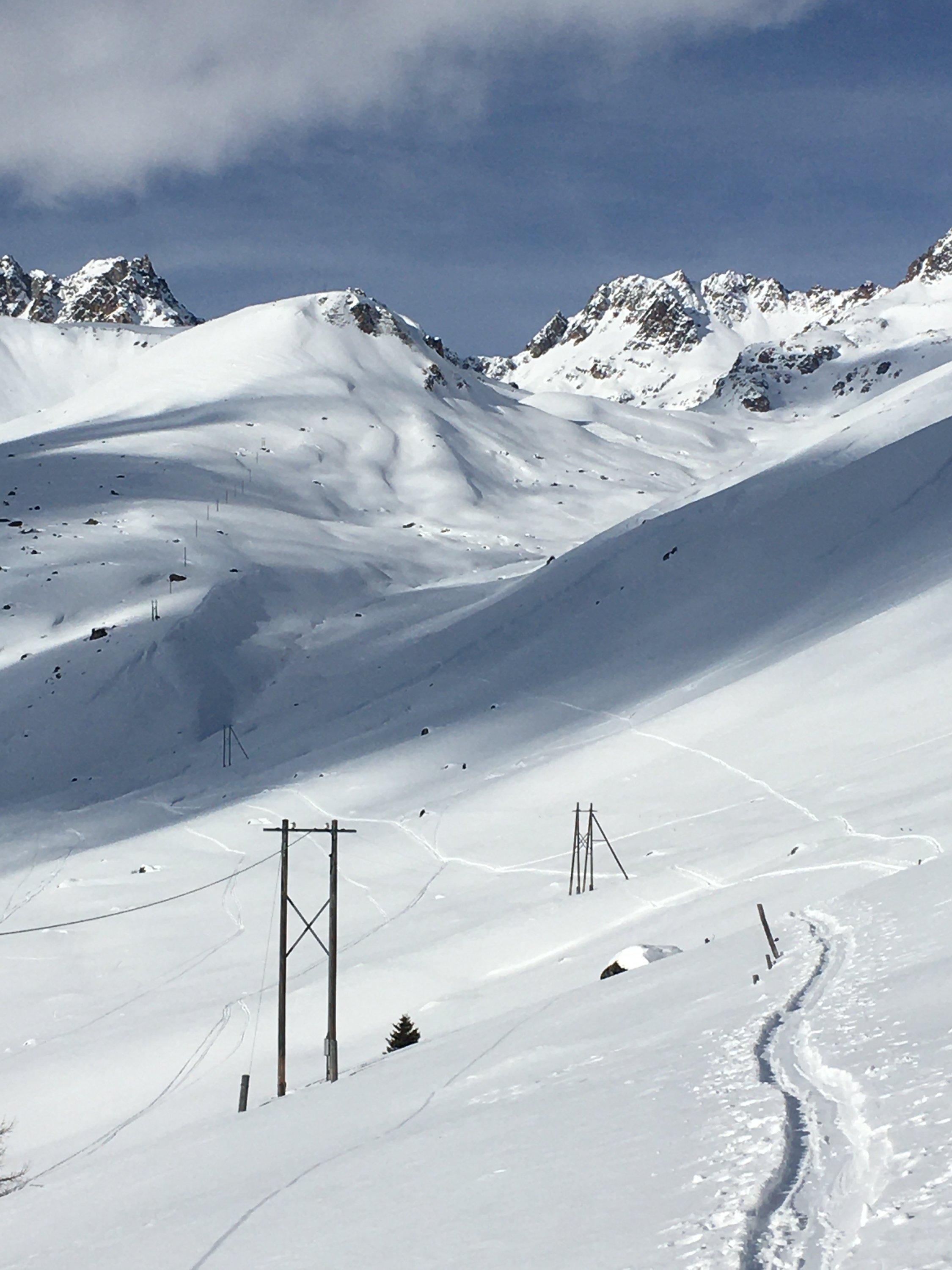 Die einfache Tour kann auch bei heiklen Bedingungen ausgeführt werden, im Es-cha Tal und im Val Müra ist man etwas windgeschützt (Föhnsturm ab Mittwoch Abend)